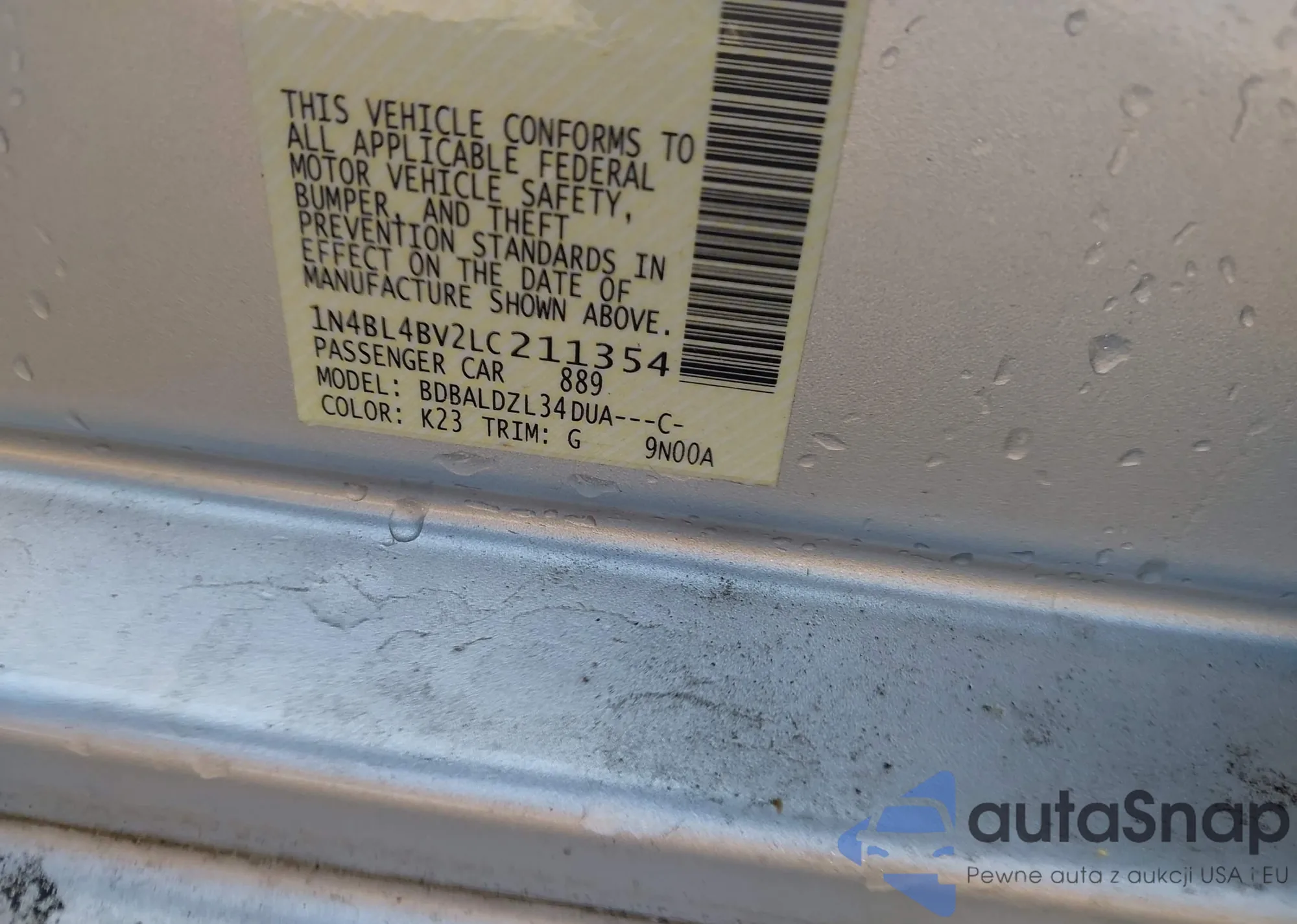 VIN: 1N4BL4BV2LC211354