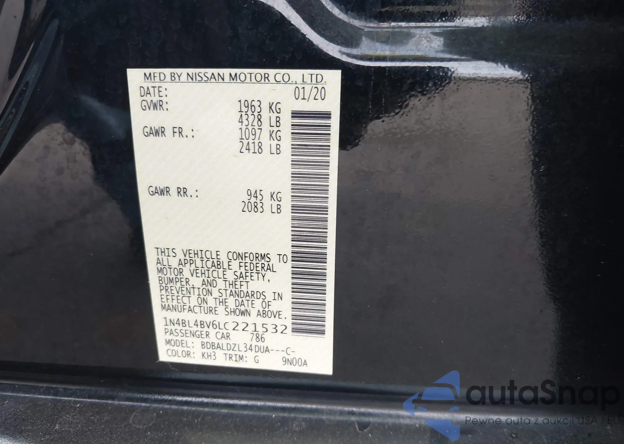 VIN: 1N4BL4BV6LC221532