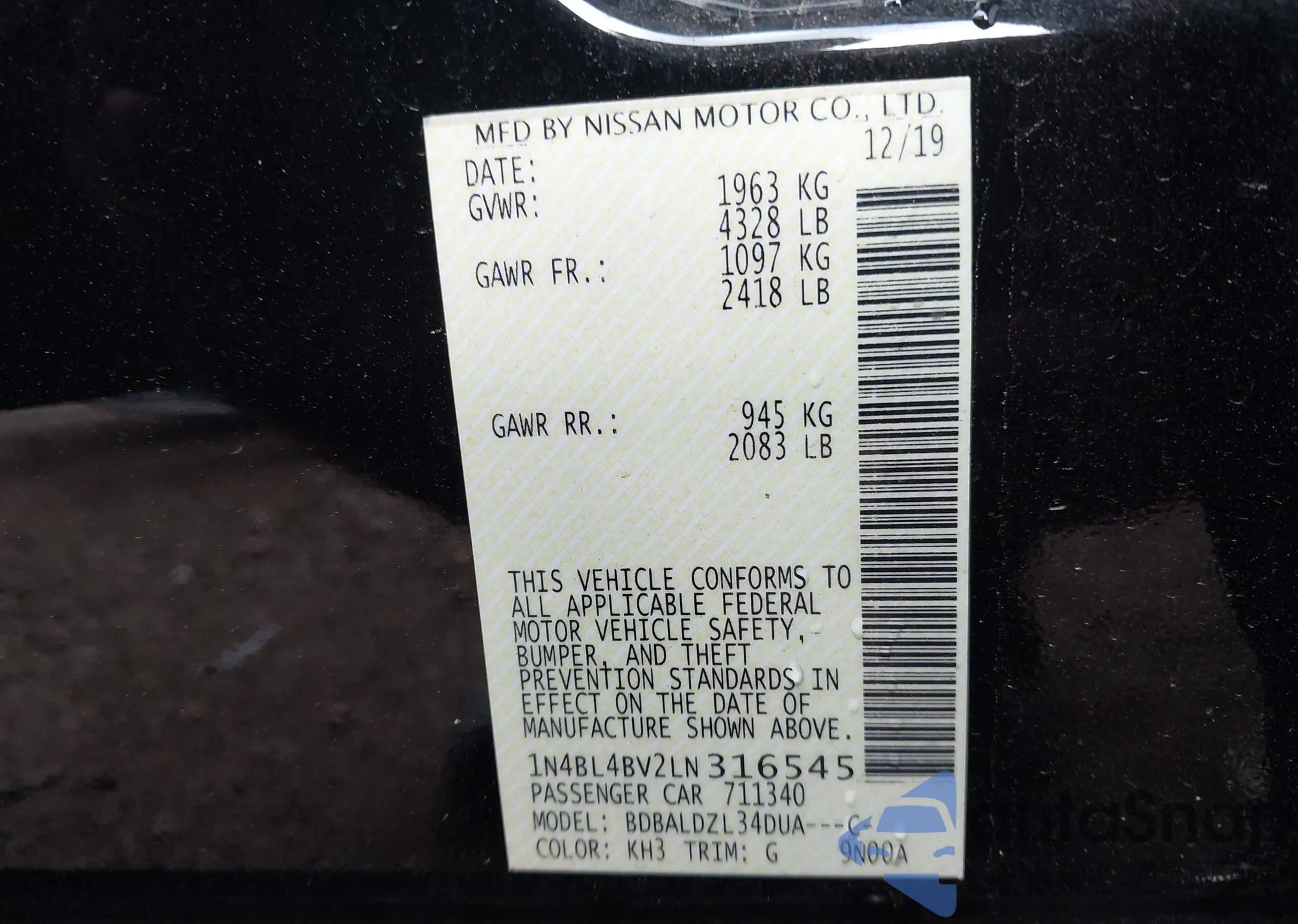 VIN: 1N4BL4BV2LN316545
