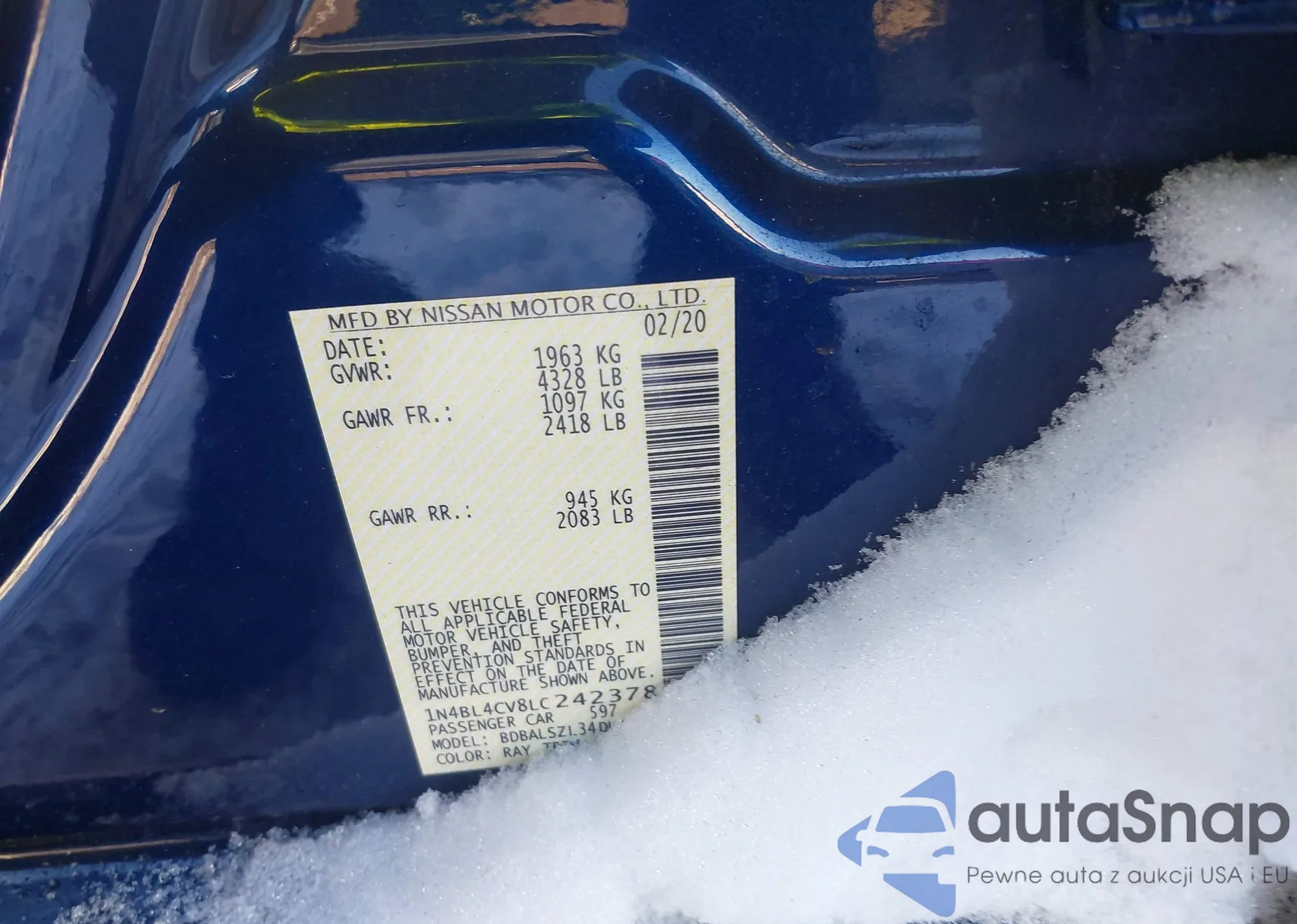 VIN: 1N4BL4CV8LC242378