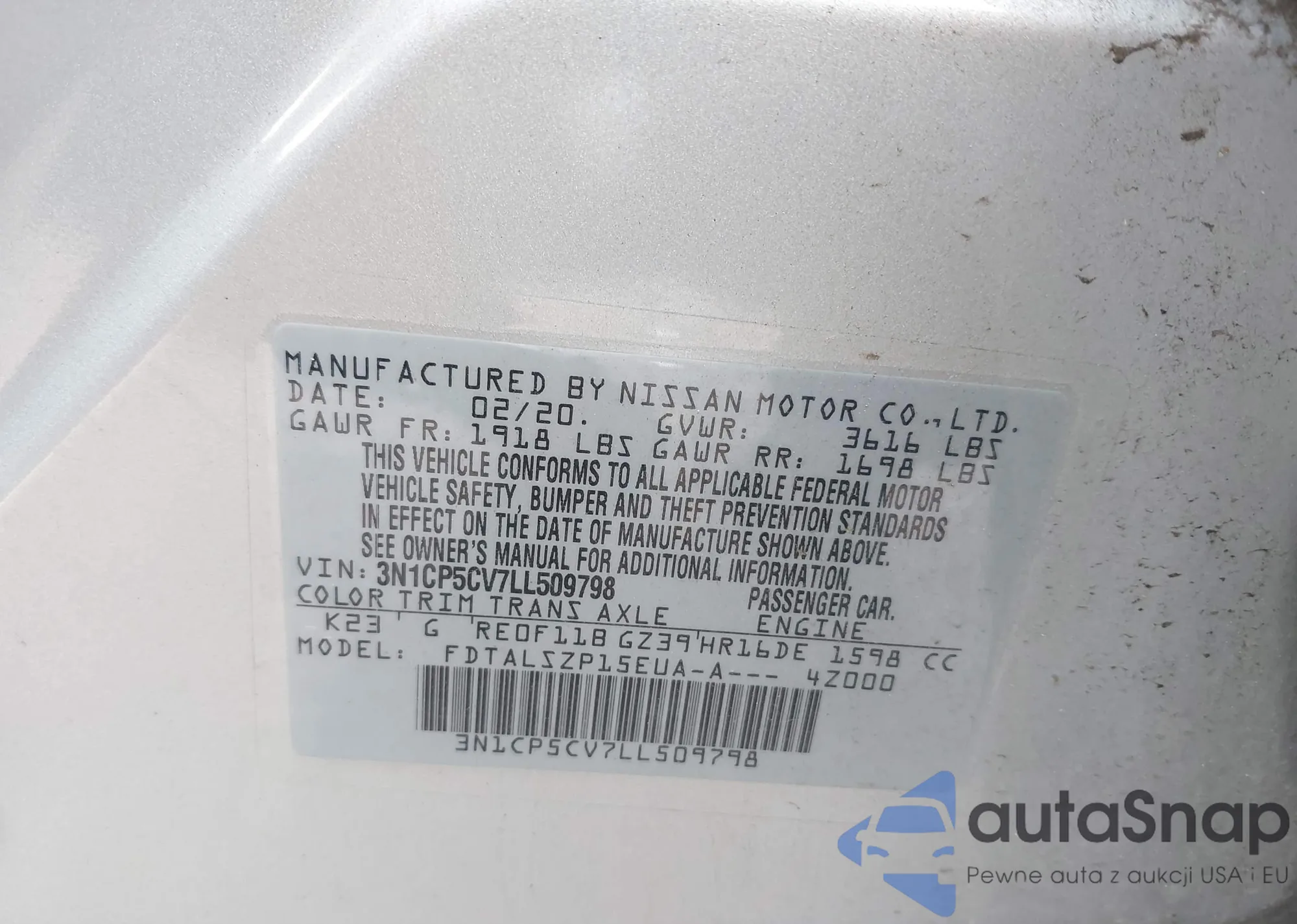 • VIN: 3N1CP5CV7LL509798