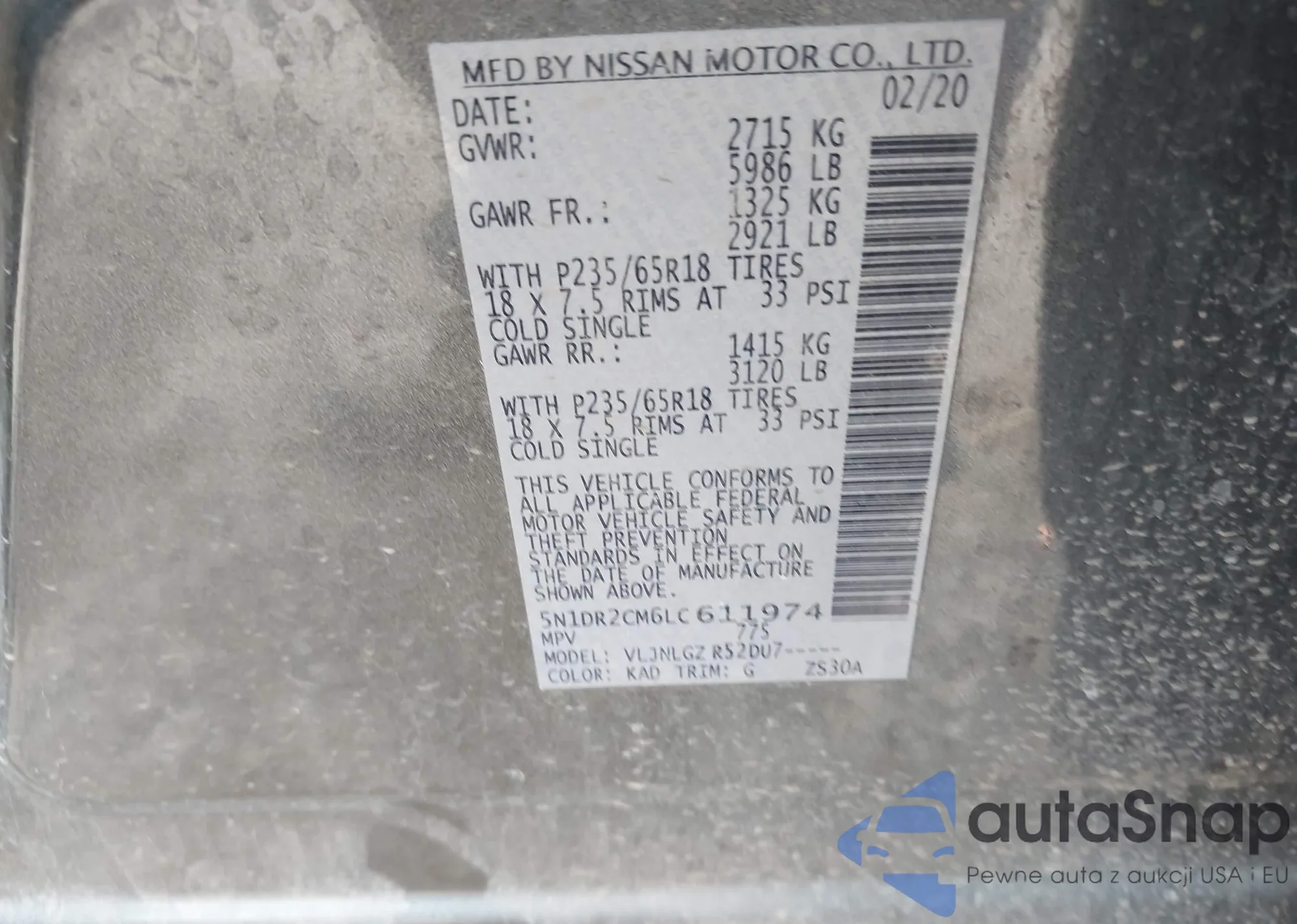 VIN: 5N1DR2CM6LC611974