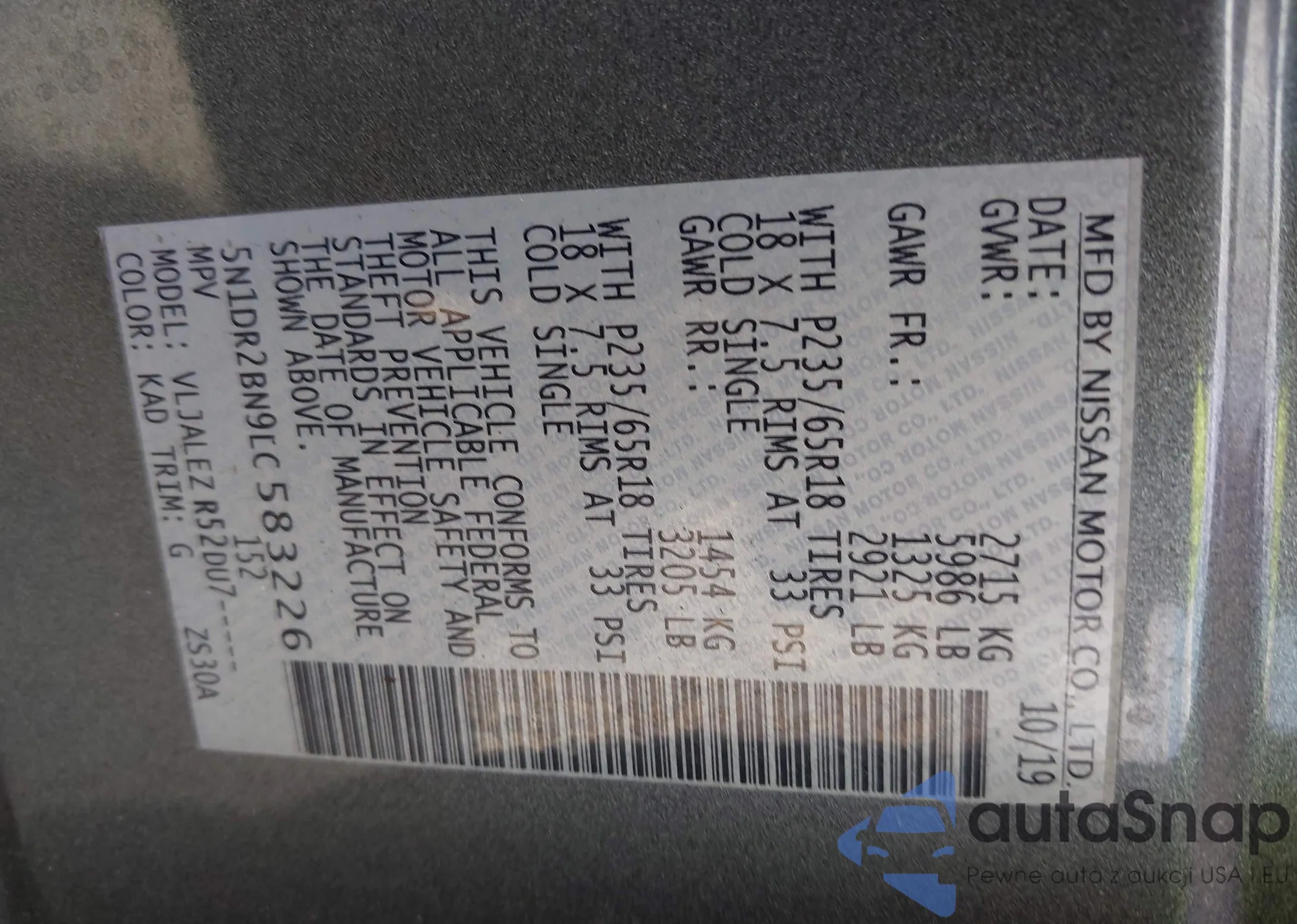VIN: 5N1DR2BN9LC583226