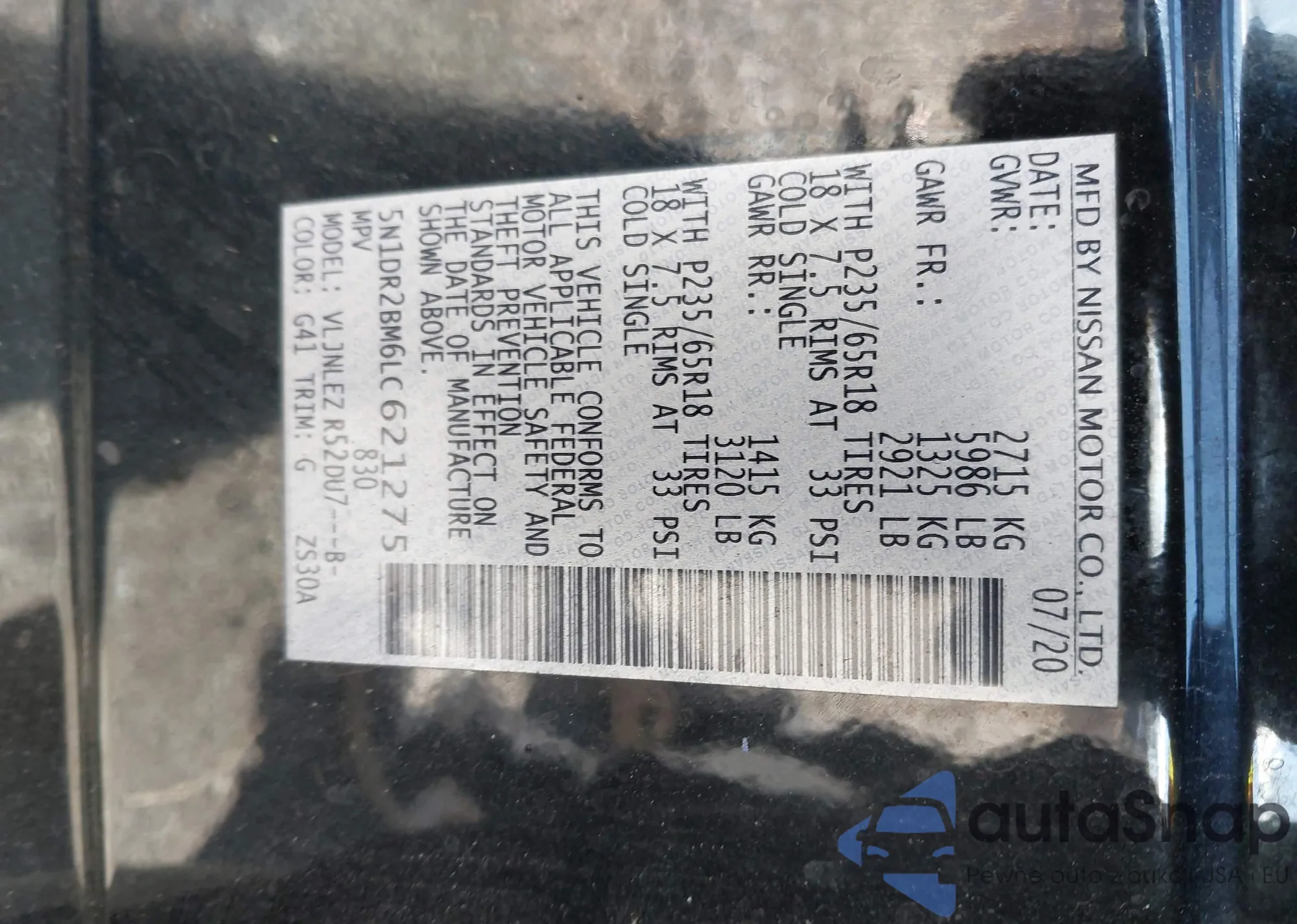 VIN: 5N1DR2BM6LC621275