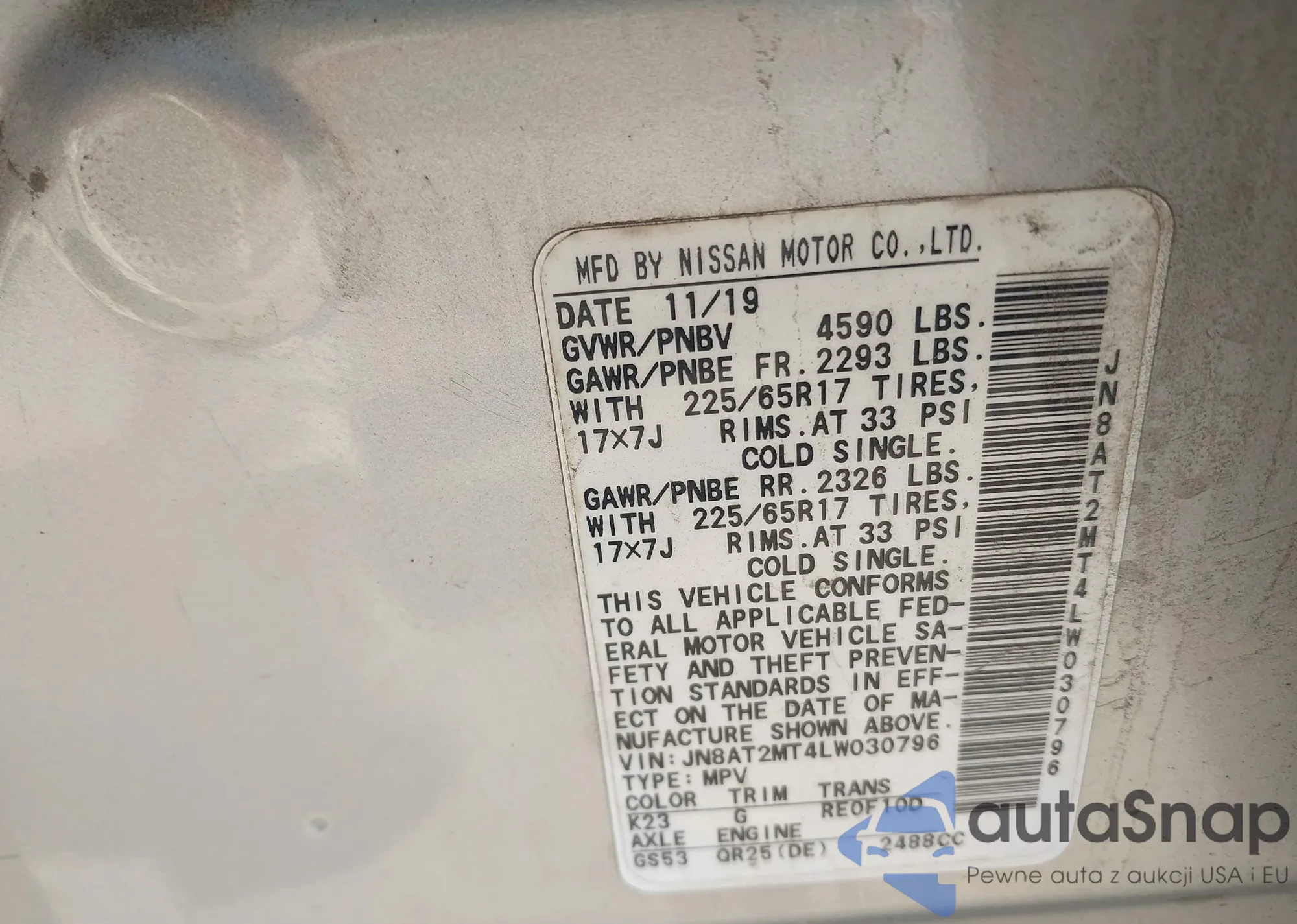 VIN: JN8AT2MT4LW030796
