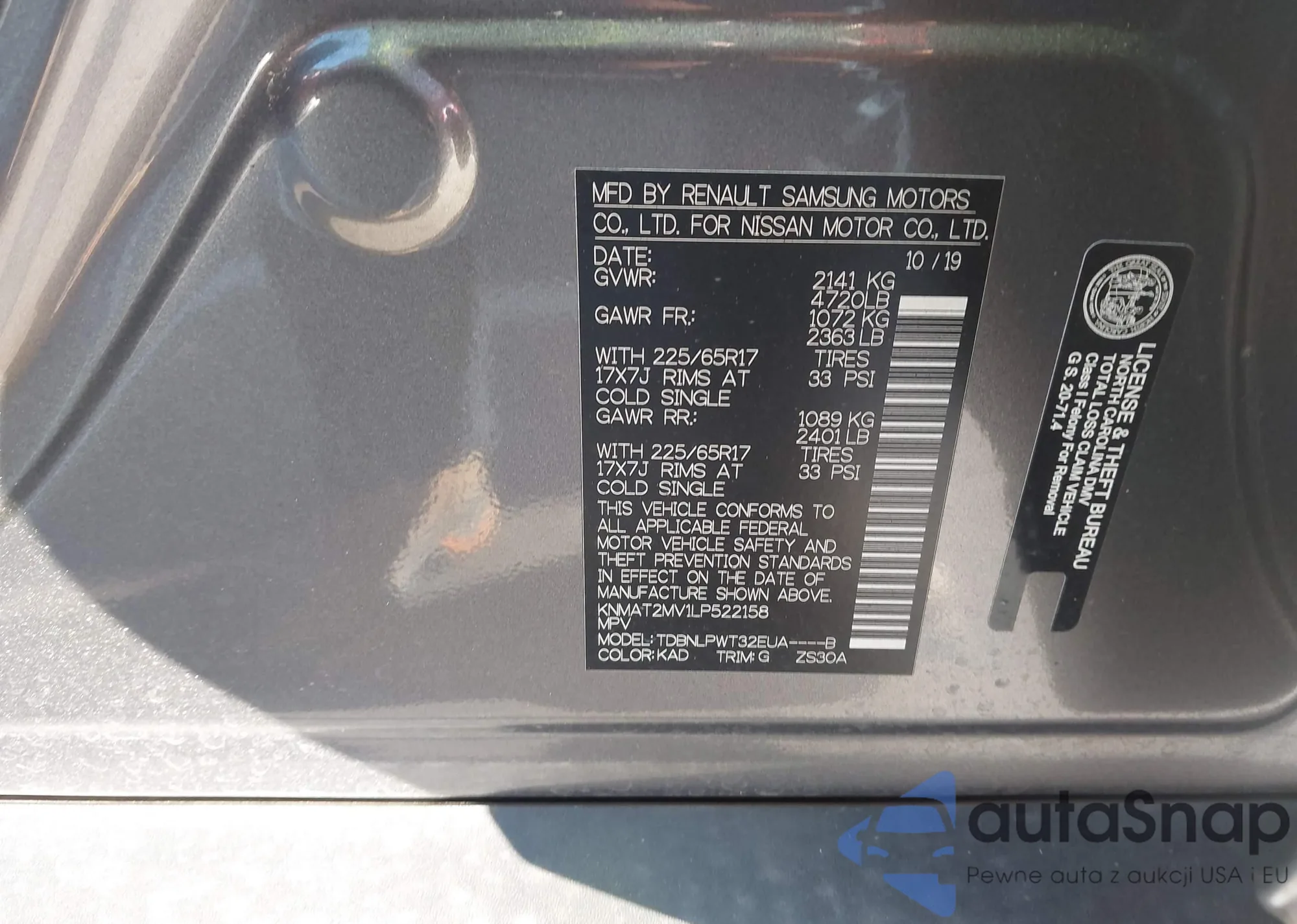 VIN: KNMAT2MV1LP522158