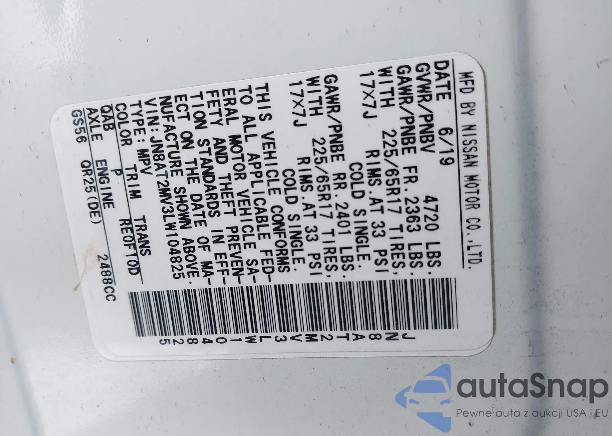 VIN: JN8AT2MV3LW104825