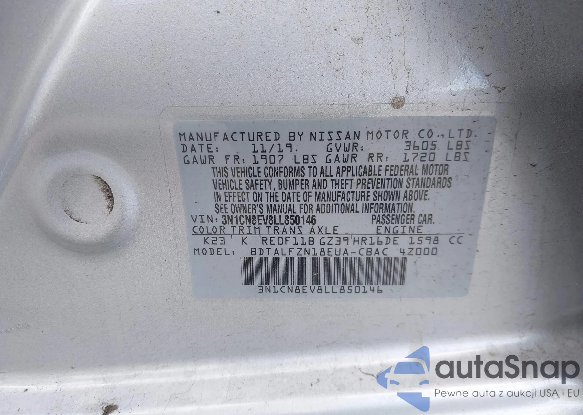VIN: 3N1CN8EV8LL850146