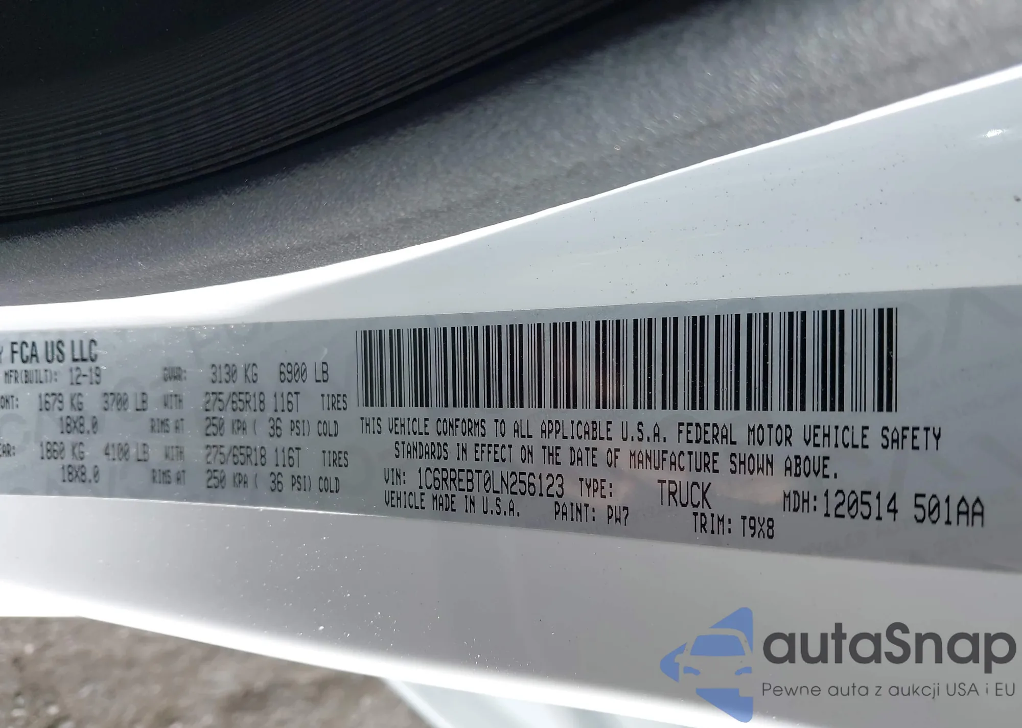 Samochód RAM 1500 2020 (VIN 1C6RREBT0LN256123) nie był wcześniej licytowany. Dokumenty są czyste, przebieg odpowiada lub jest niższy niż średnia rynku. Sprzedaje go firma ubezpieczeniowa – polecamy zakup. Dostawa do portu zajmie ok. 6–8 tygodni.