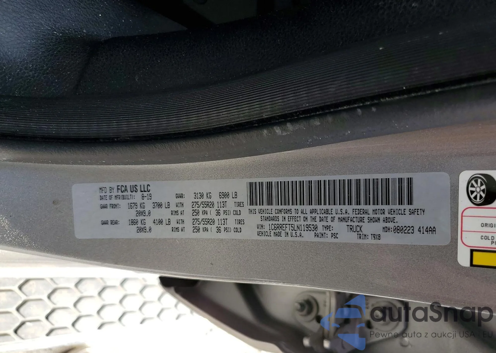Samochód RAM 1500 2020 (VIN 1C6RREFT5LN119530) nie był wcześniej licytowany. Dokumenty są czyste, przebieg odpowiada lub jest niższy niż średnia rynku. Sprzedaje go firma ubezpieczeniowa – polecamy zakup. Dostawa do portu zajmie ok. 6–8 tygodni.