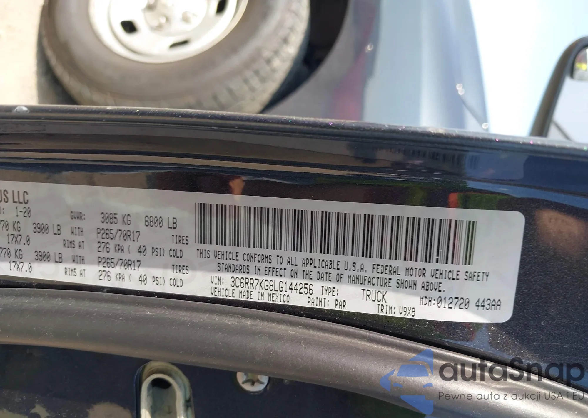VIN: 3C6RR7KG8LG144256