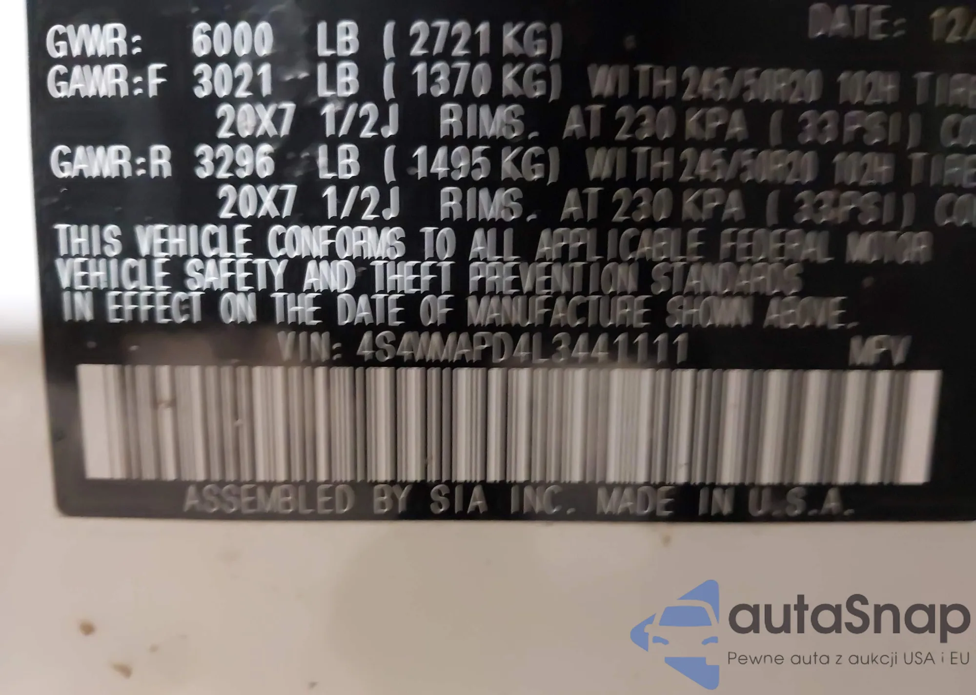 • VIN: 4S4WMAPD4L3441111