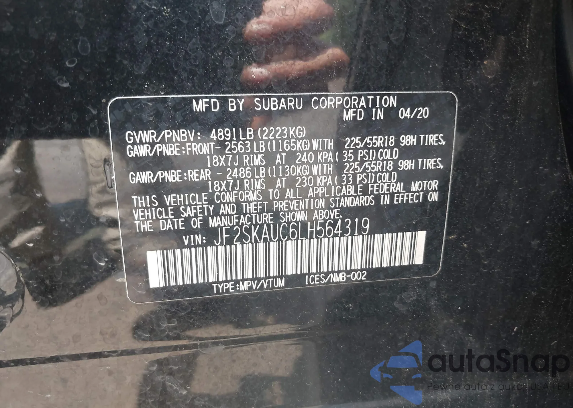 VIN: JF2SKAUC6LH564319