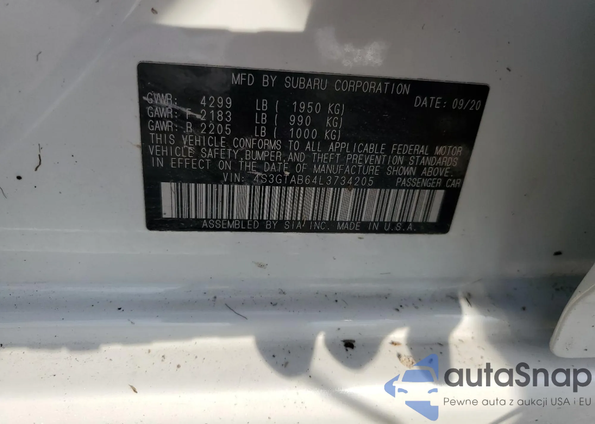 • VIN: 4S3GTAB64L3734205