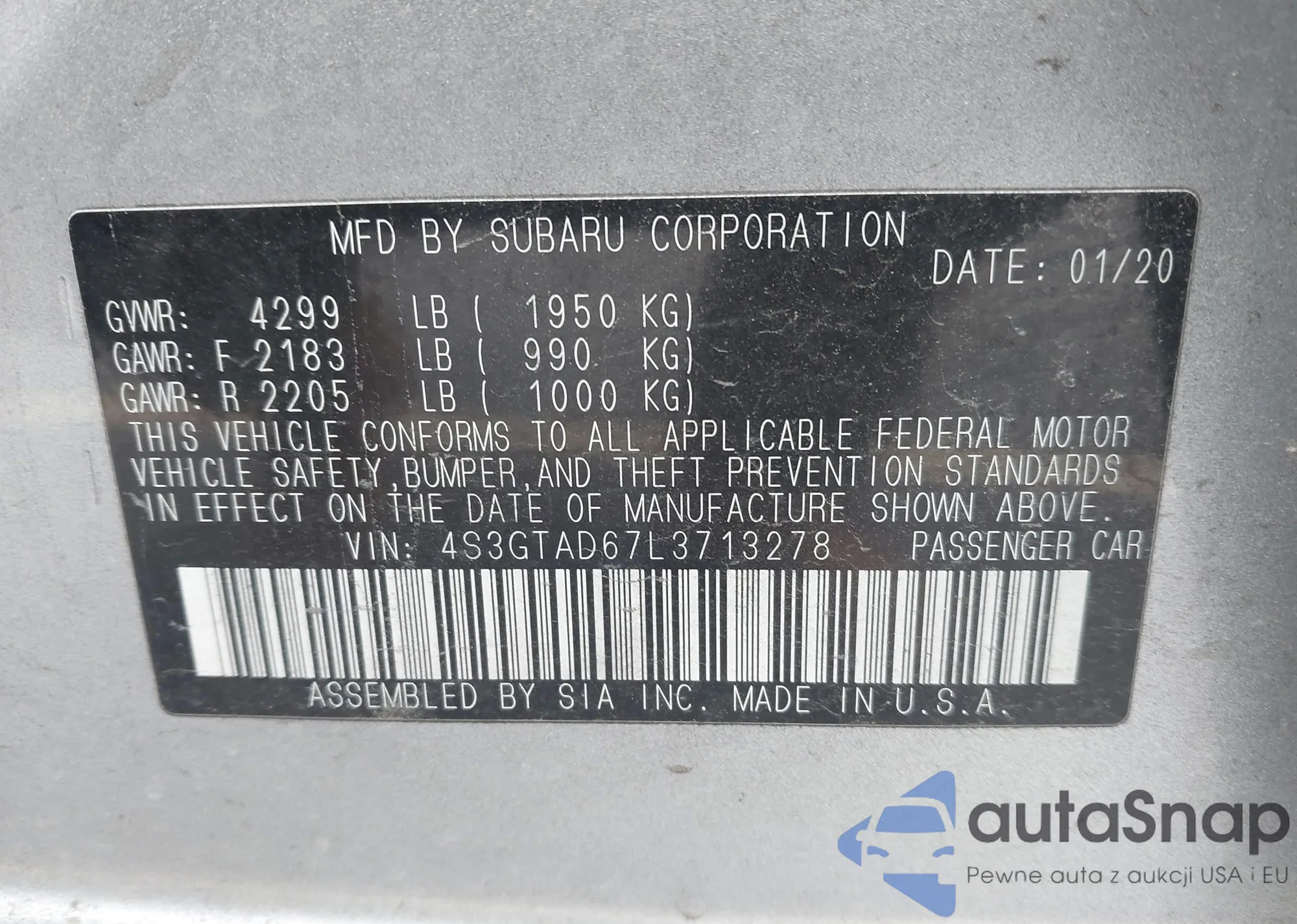 • VIN: 4S3GTAD67L3713278