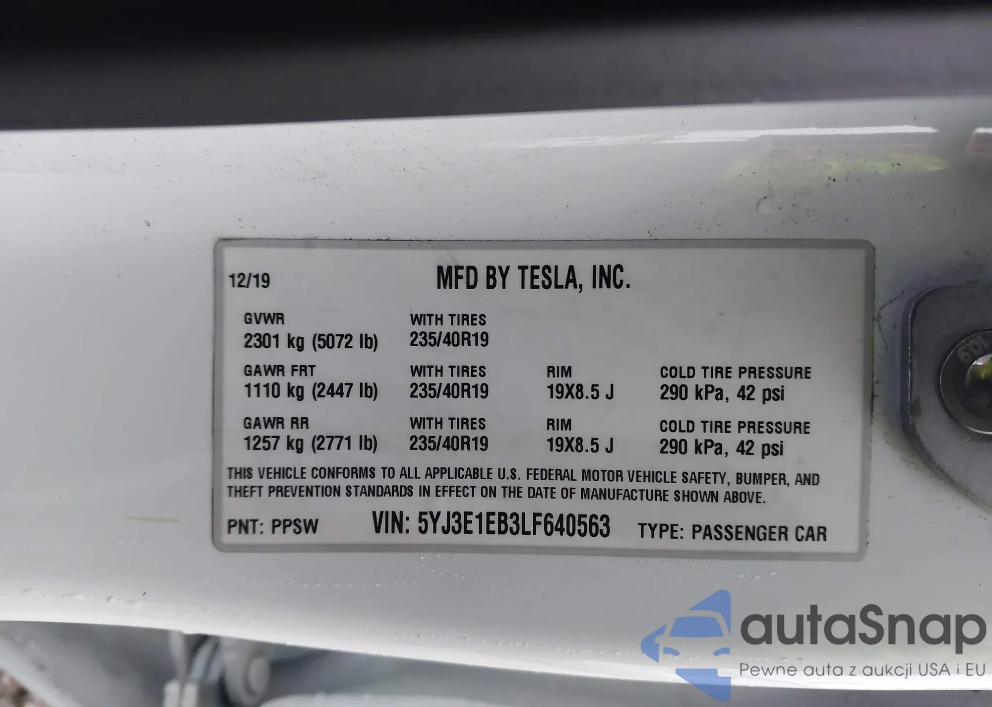 Samochód Tesla Model 3 2020 (VIN 5YJ3E1EB3LF640563) nie był wcześniej licytowany. Dokumenty są czyste, przebieg odpowiada lub jest niższy niż średnia rynku. Sprzedaje go firma ubezpieczeniowa – polecamy zakup. Dostawa do portu zajmie ok. 6–8 tygodni.