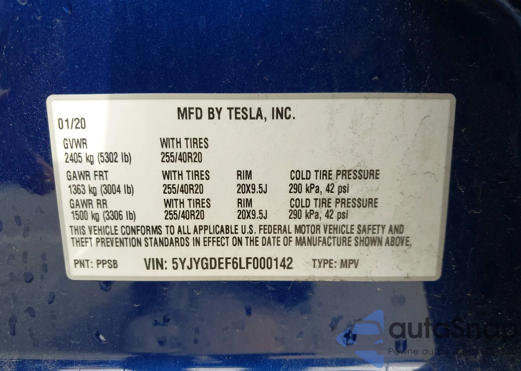 VIN: 5YJYGDEF6LF000142