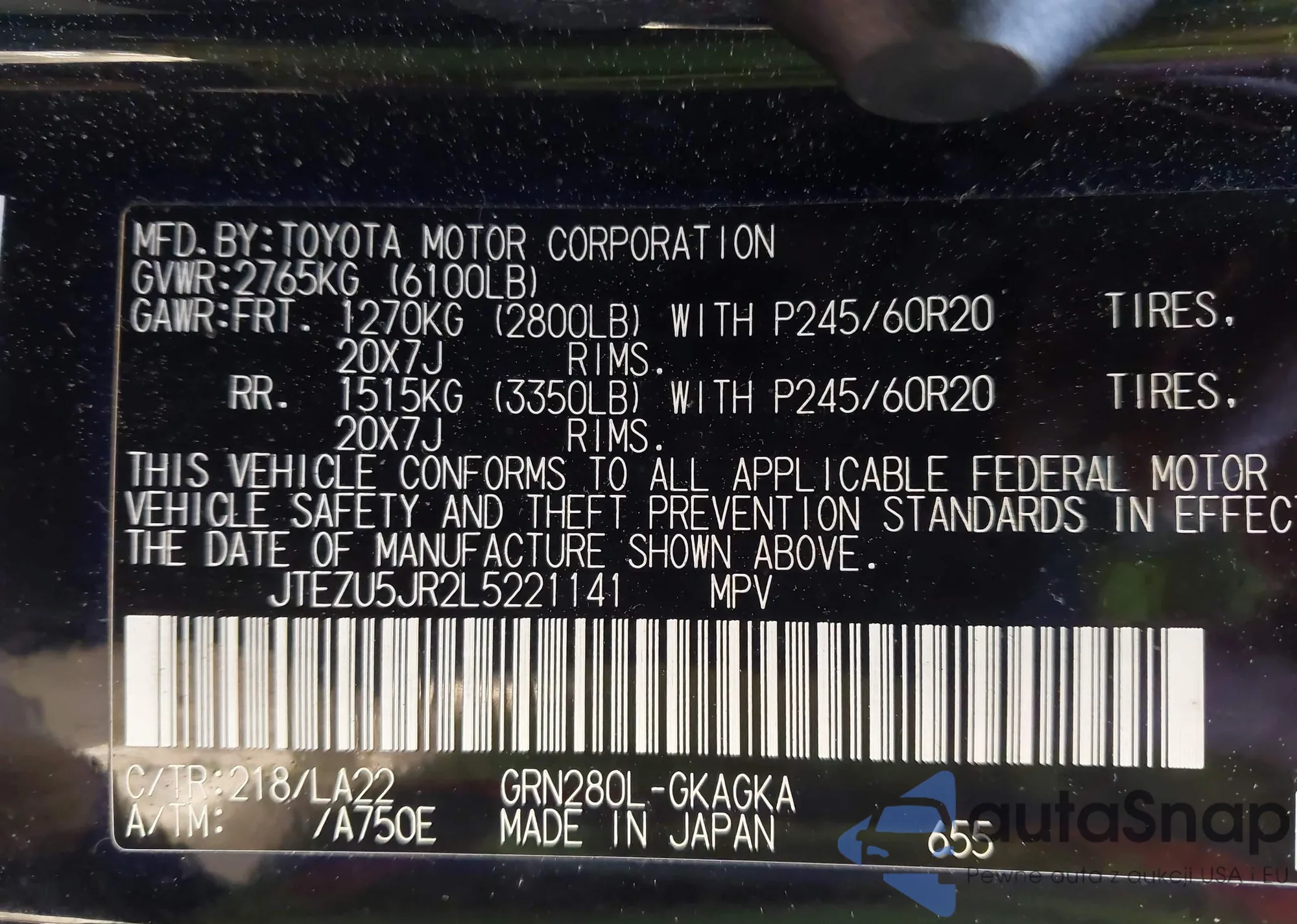 VIN: JTEZU5JR2L5221141