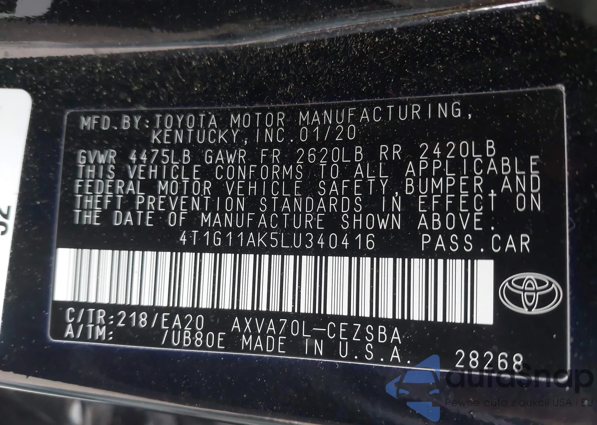 VIN: 4T1G11AK5LU340416