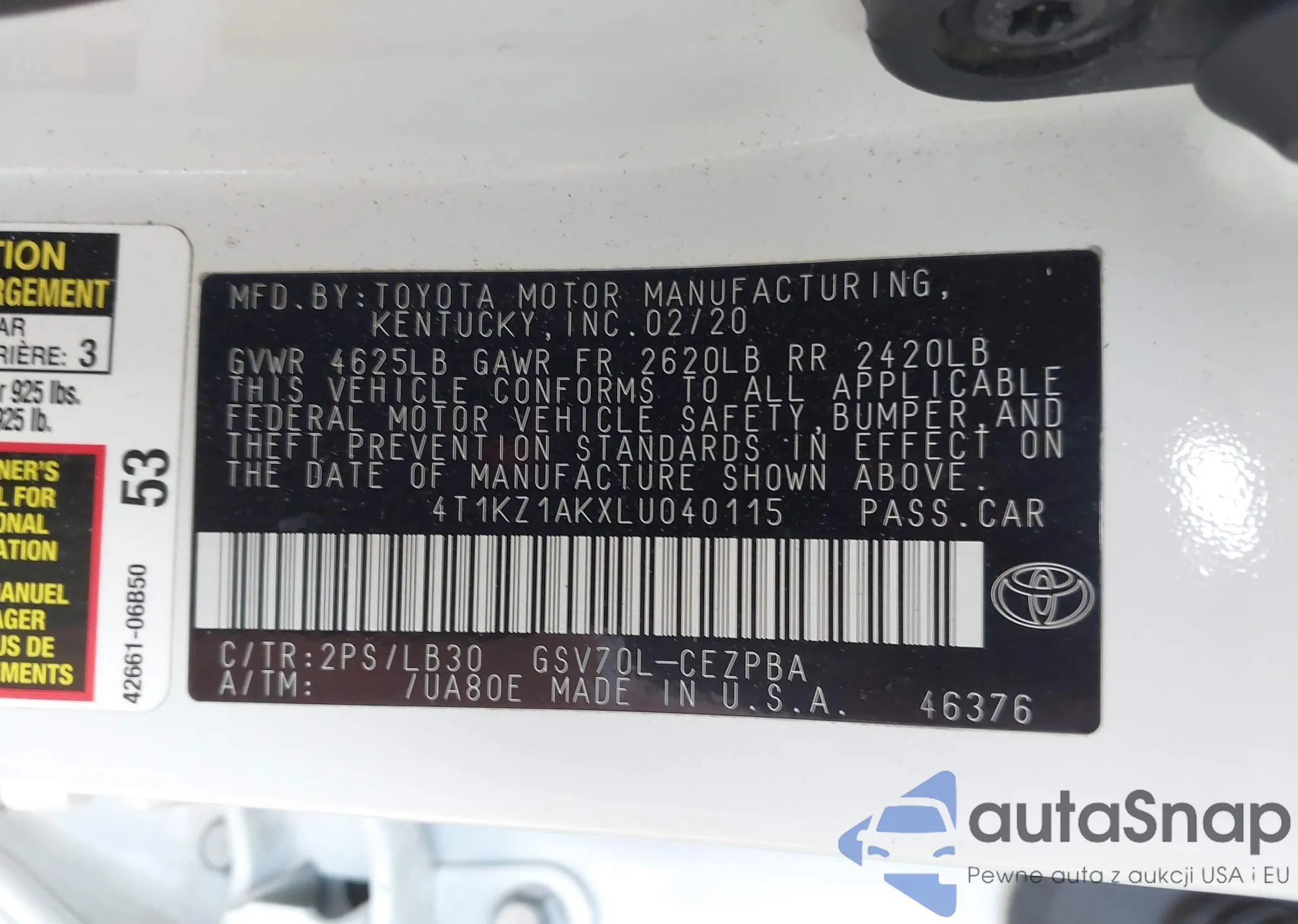 • VIN: 4T1KZ1AKXLU040115