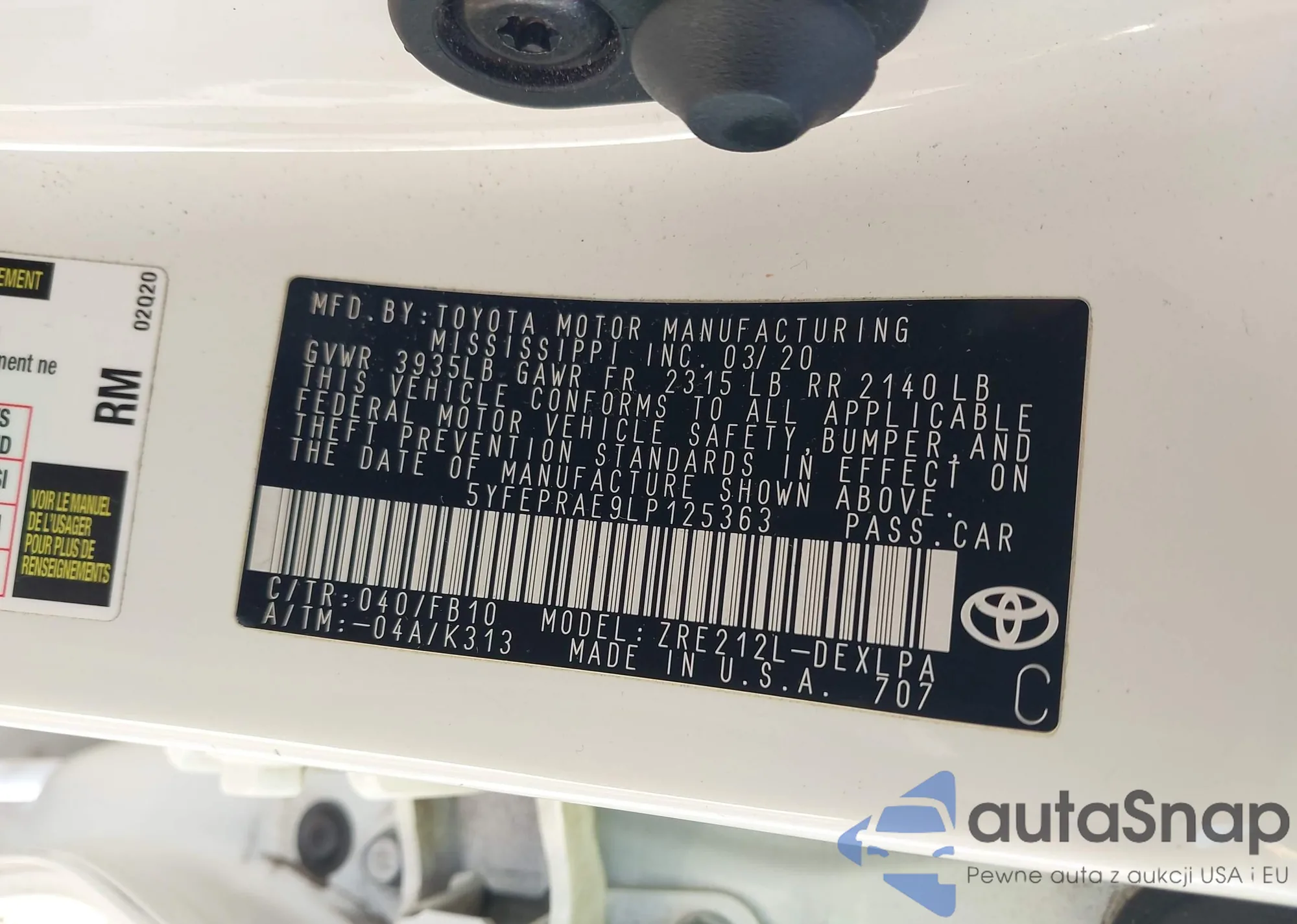 VIN: 5YSEPRAE9LP125363