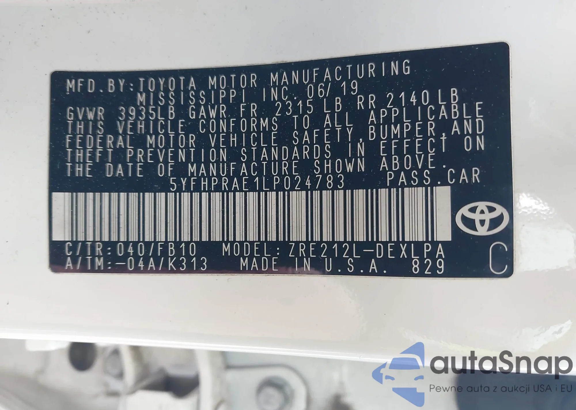 VIN: 5YFHPRAE1LP024783
