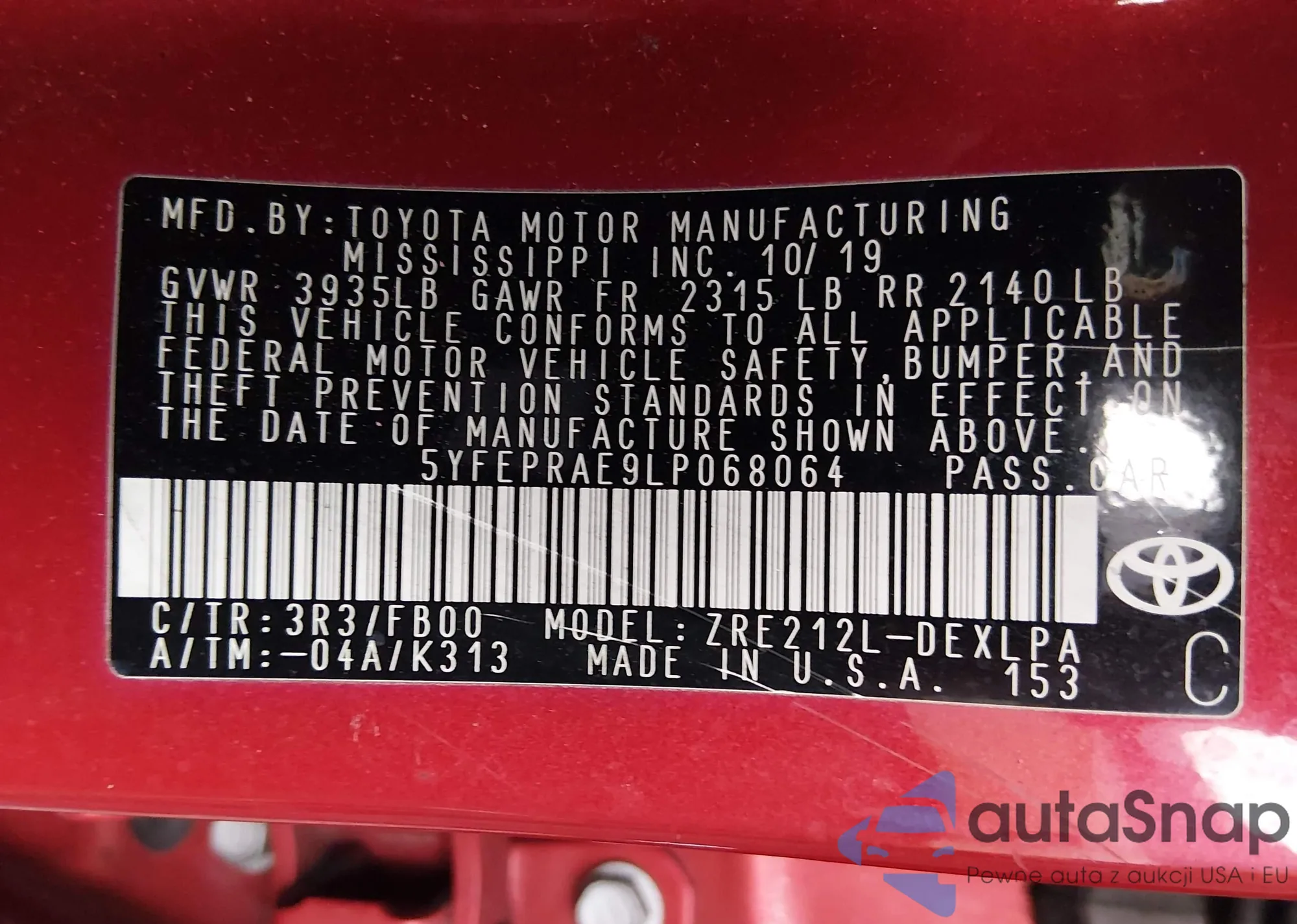 • VIN: 5YFEPRAE9LP068064