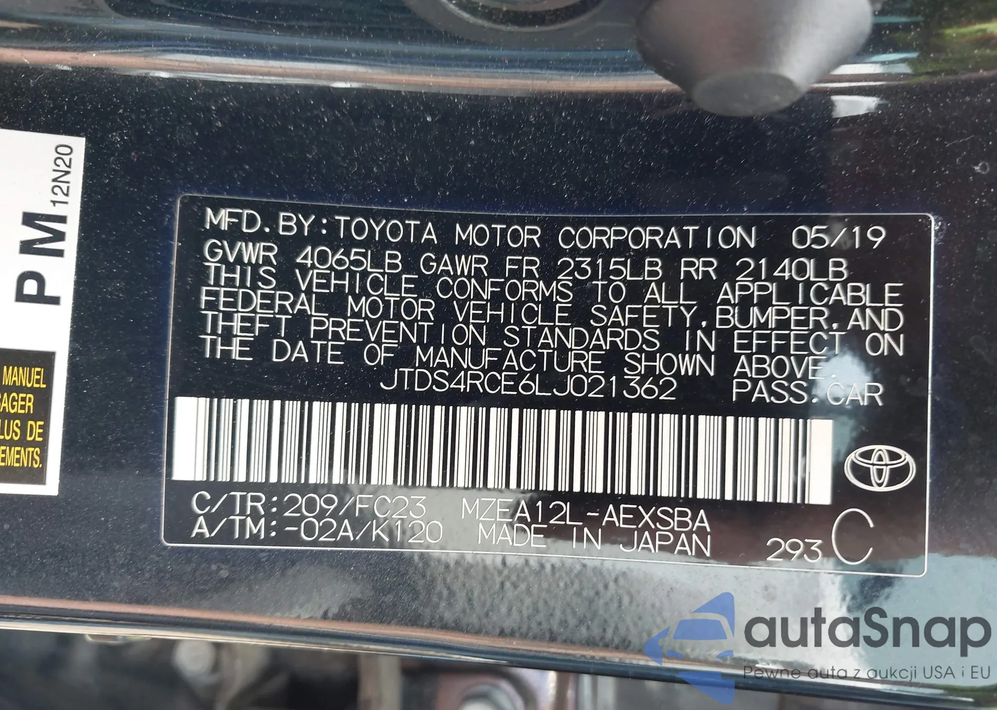 VIN: JTDS4RCE6LJ021362