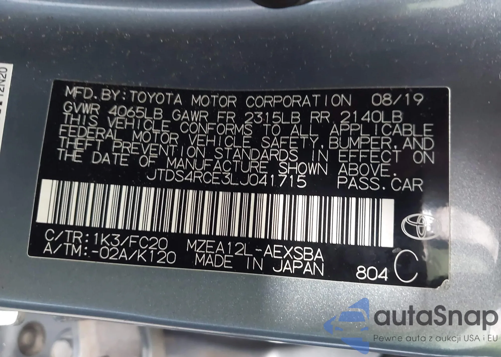 VIN: JTDS4RCE3LJ041715