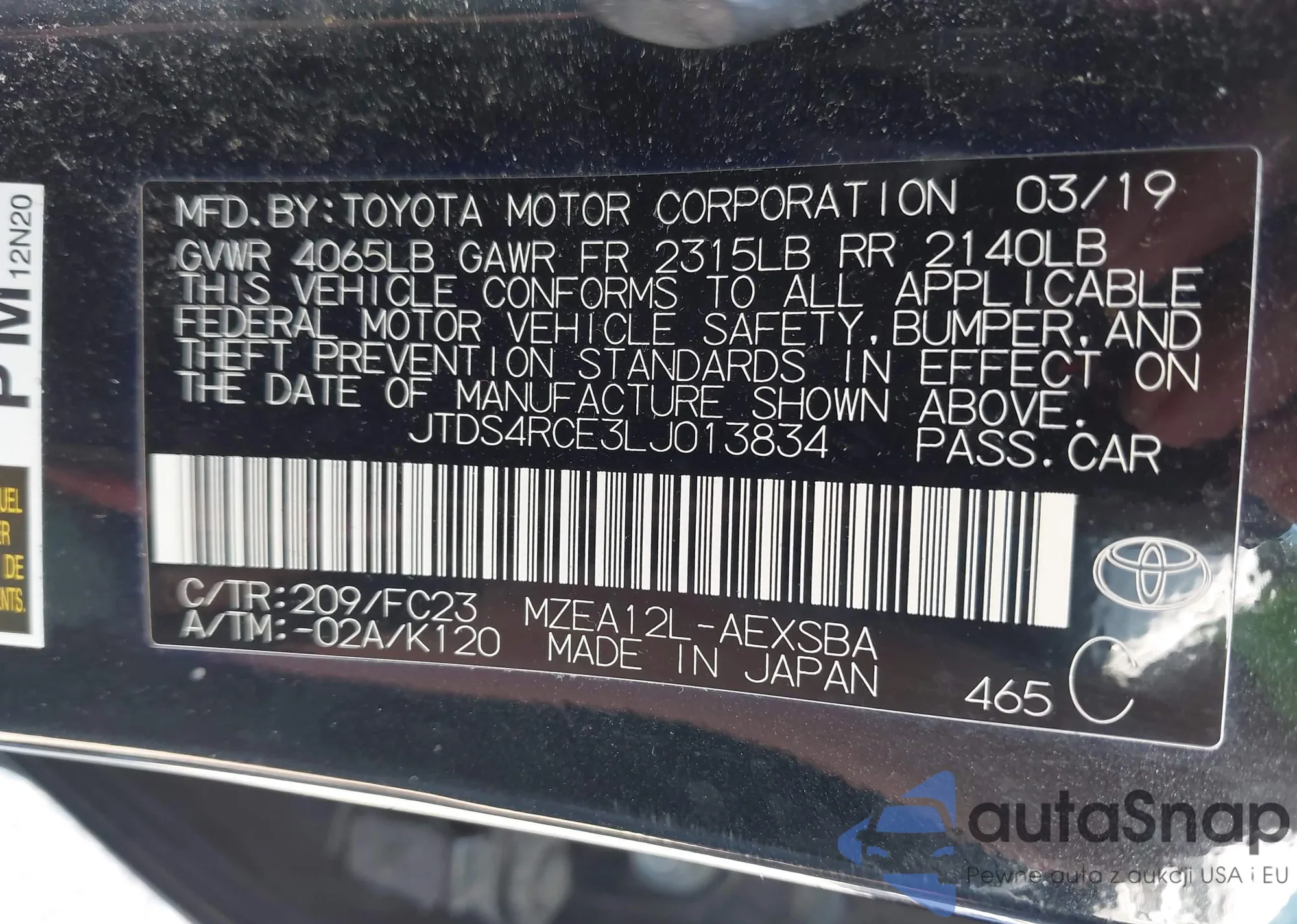 VIN: JTDS4RCE3LJ013834