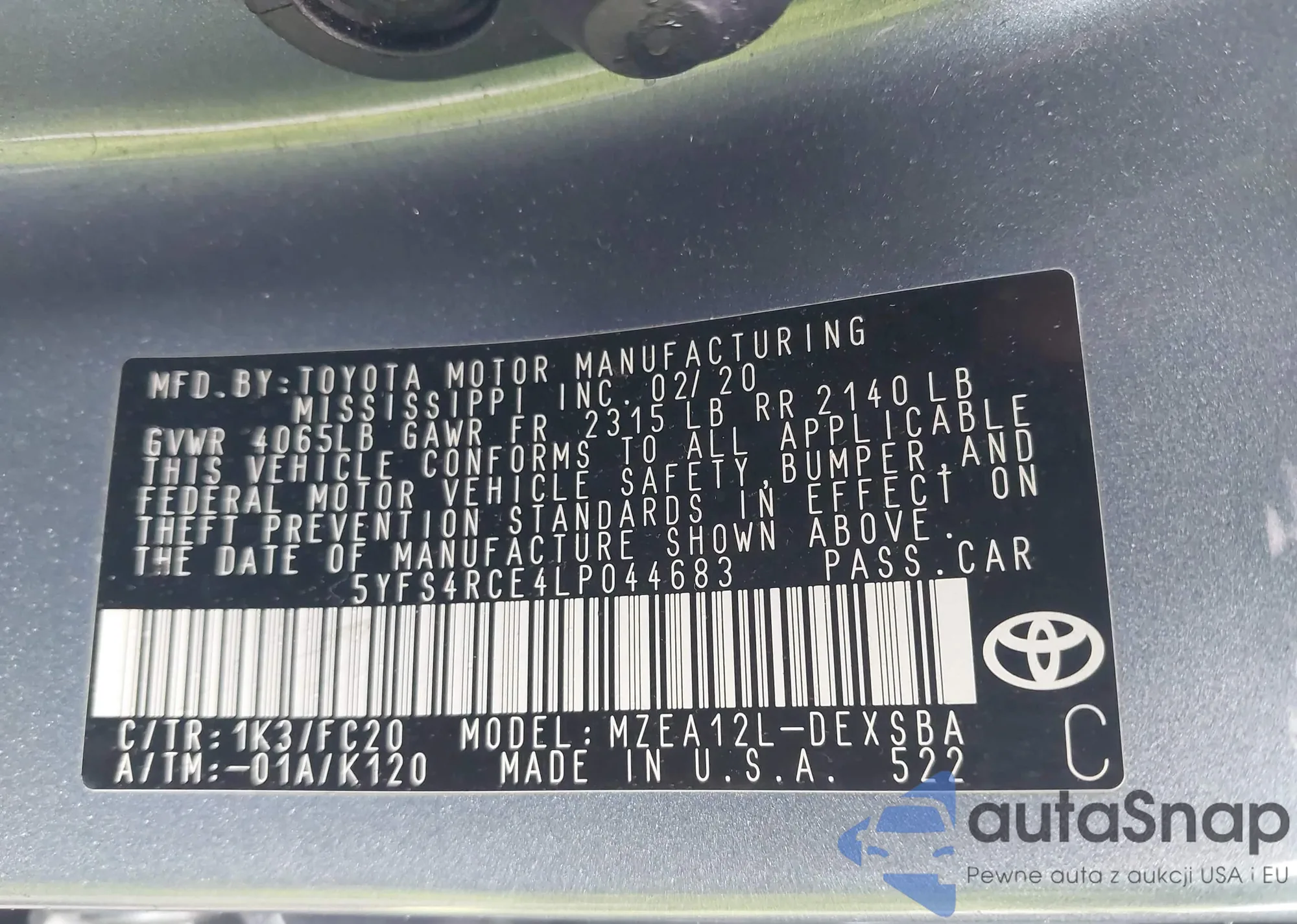 Samochód Toyota Corolla 2020 (VIN 5YFS4RCE4LP044683) był już licytowany 1 razy i/lub sprzedaje go niezweryfikowany sprzedawca. Zalecamy raport Carfax i potwierdzenie możliwości rejestracji pojazdu przed zakupem.