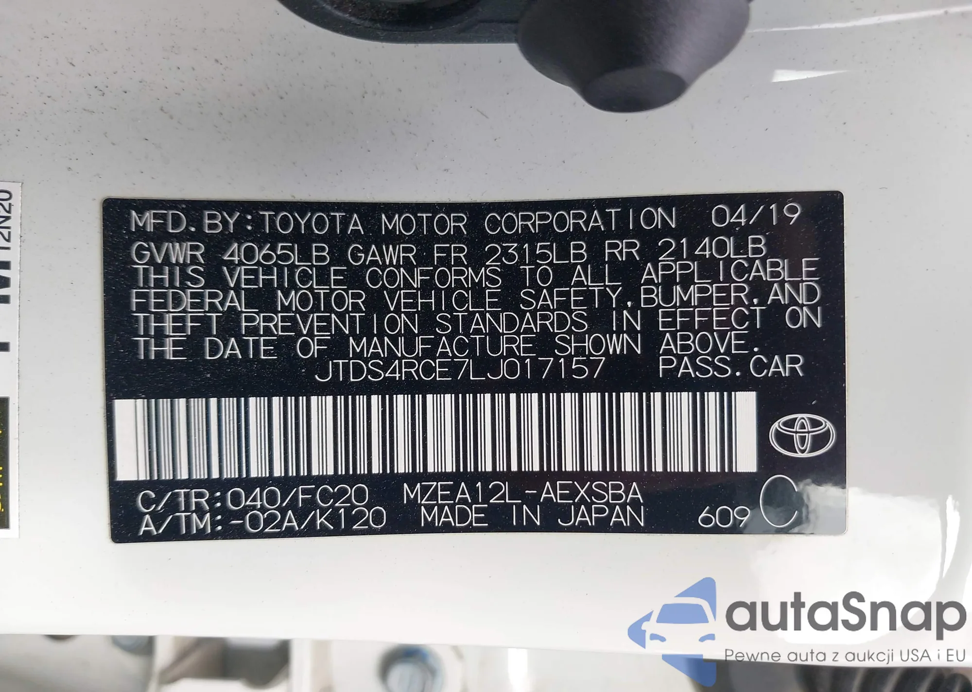 VIN: JTDS4RCE7LJ017157
