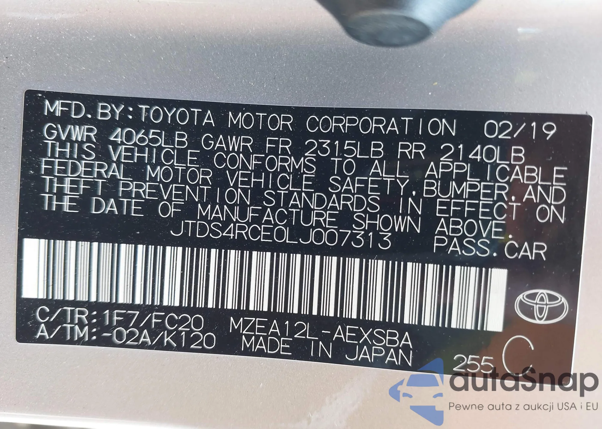 VIN: JTDS4RCE0LJ007313