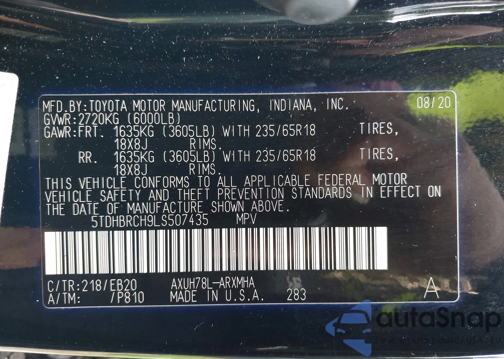 VIN: 5TDHBRCH9LS507435