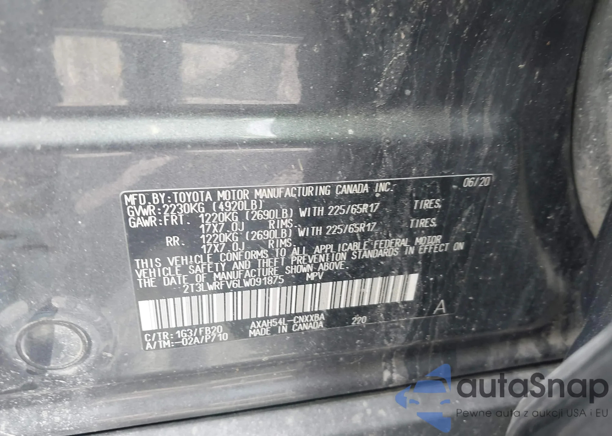 VIN: 2T3LWRFV6LW091875