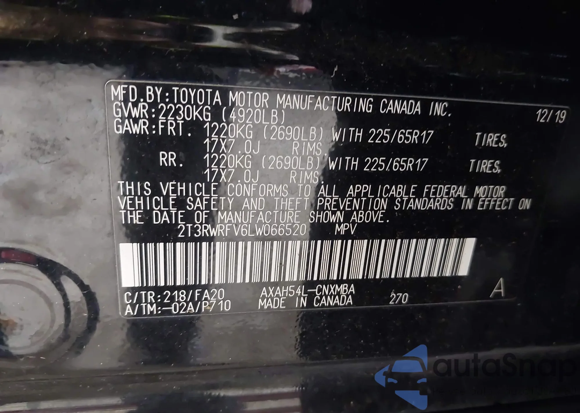 Samochód Toyota RAV 4 2020 (VIN 2T3RWRFV6LW066520) ma dokumenty uniemożliwiające rejestrację. Mogą pojawić się trudności przy eksporcie i rejestracji. Skontaktuj się z ekspertami AutaSnap w celu znalezienia alternatywy.
