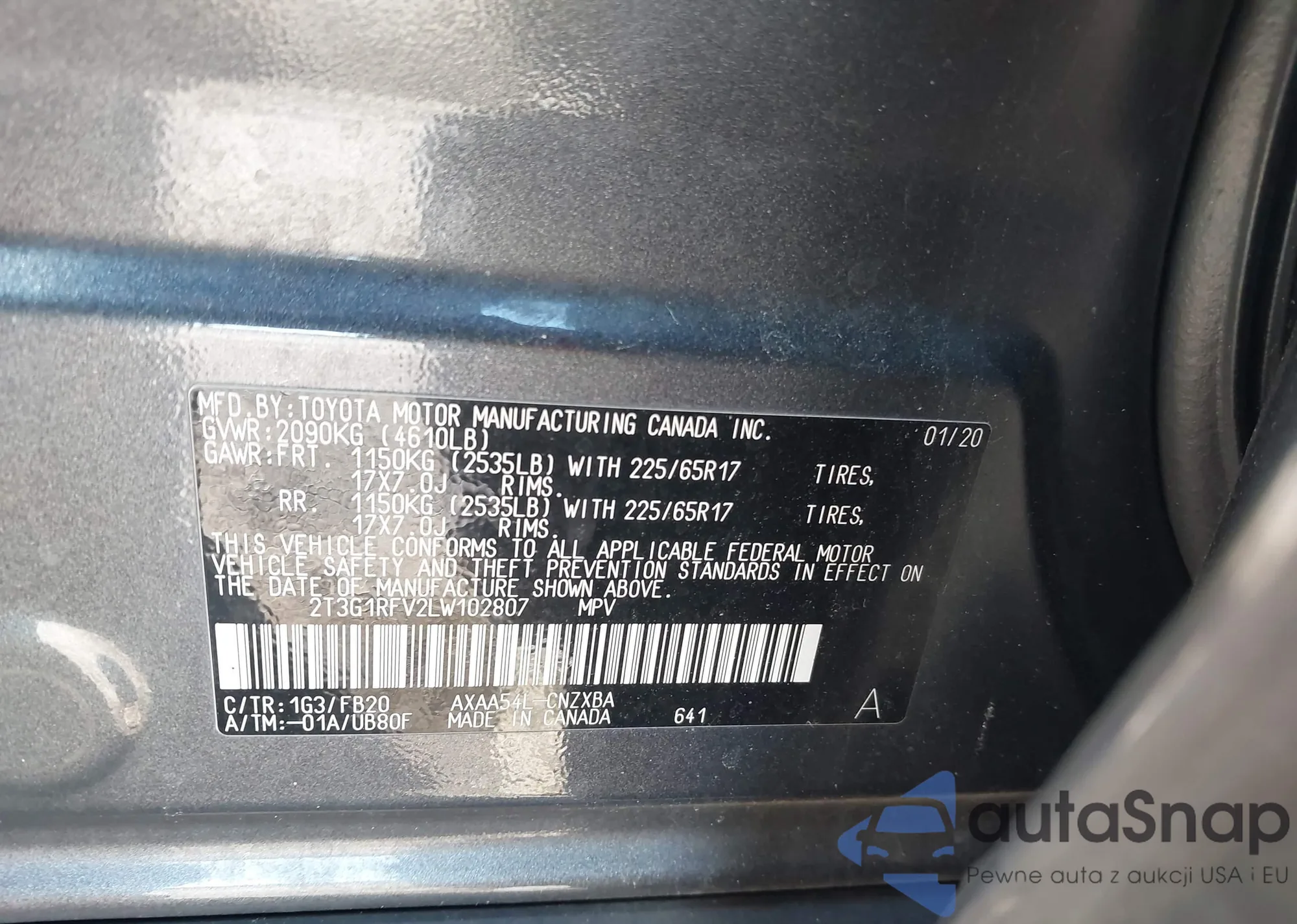 VIN: 2T3G1RFV2LW102807