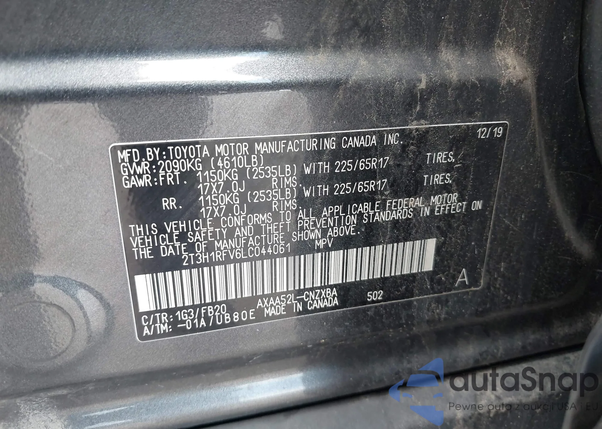 VIN: 2T3H1RFV6LC044061