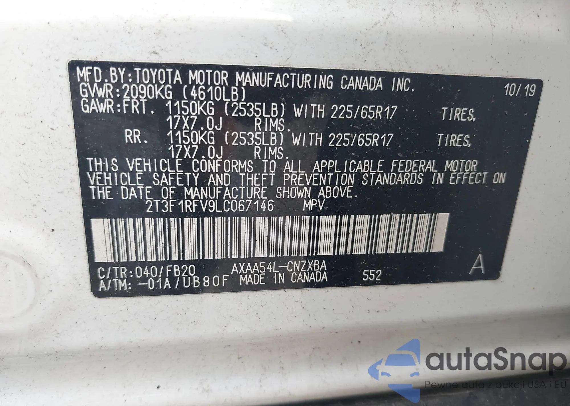 VIN: 2T3F1RFV9LC067146