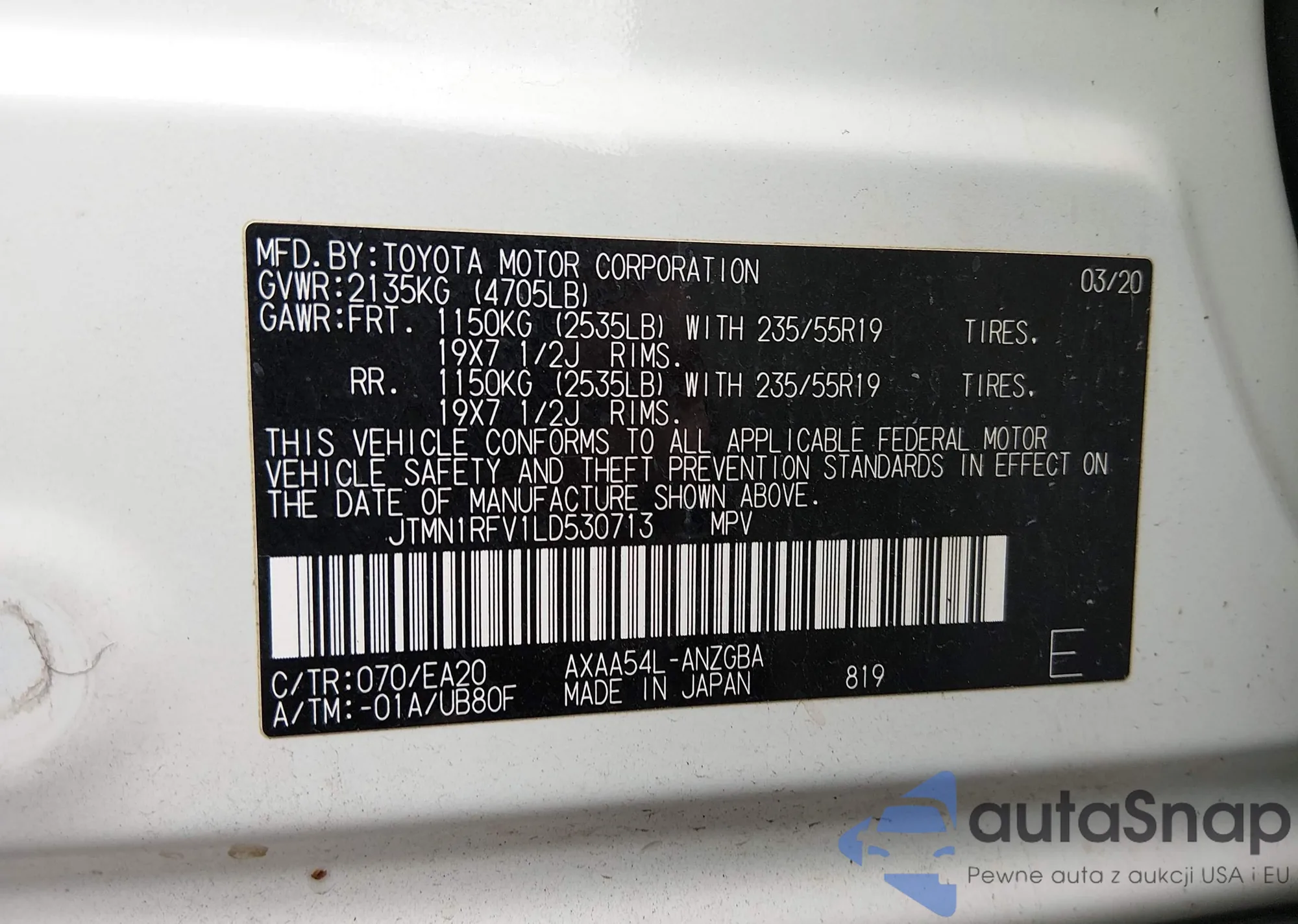 • VIN: JTMN1RFV1LD530713