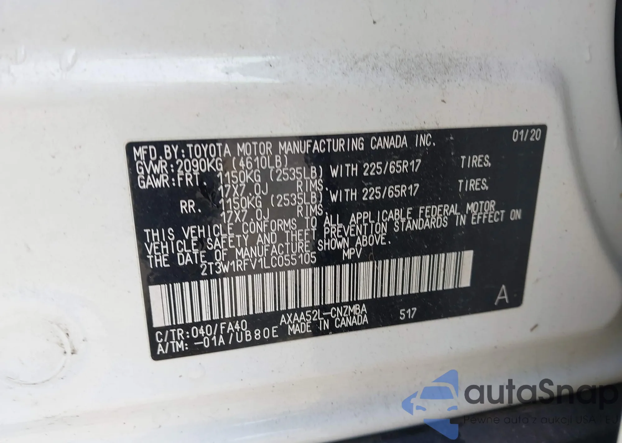 VIN: 2T3W1RFV1LC055105