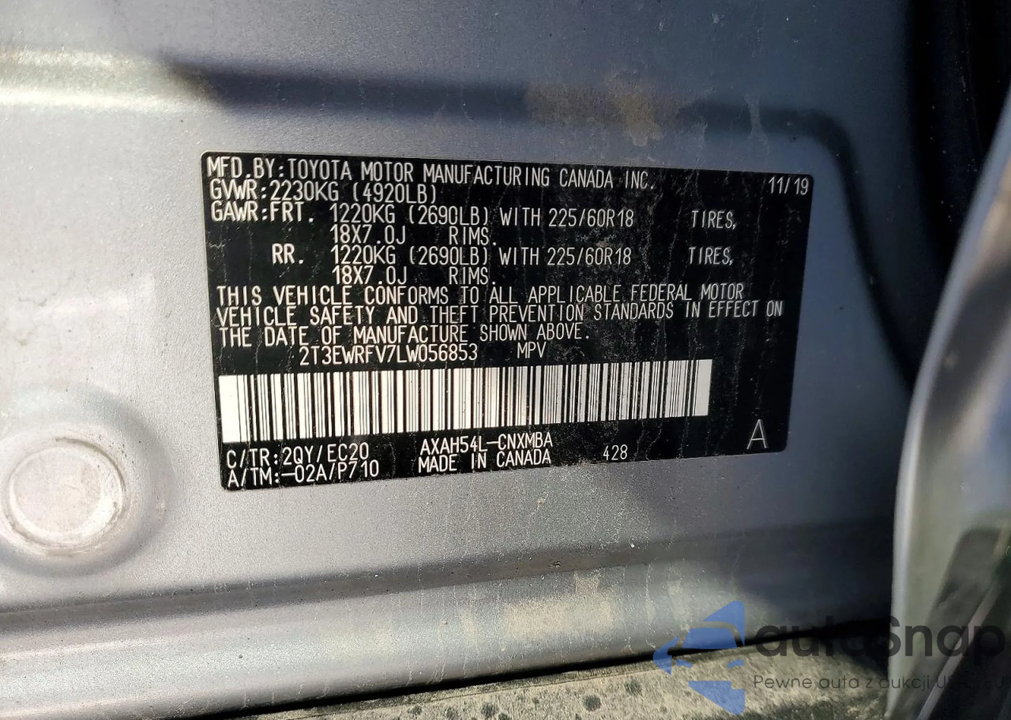 Samochód Toyota RAV 4 2020 (VIN 2T3EWRFV7LW056853) sprzedaje go niezweryfikowany sprzedawca. Zalecamy raport Carfax i potwierdzenie możliwości rejestracji pojazdu przed zakupem.