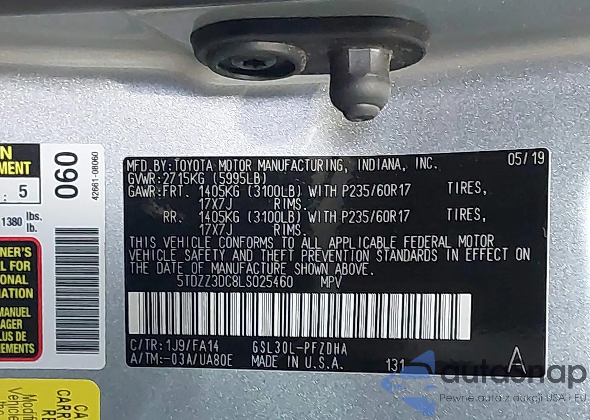 VIN: 5TDZZ3DC8LS025460