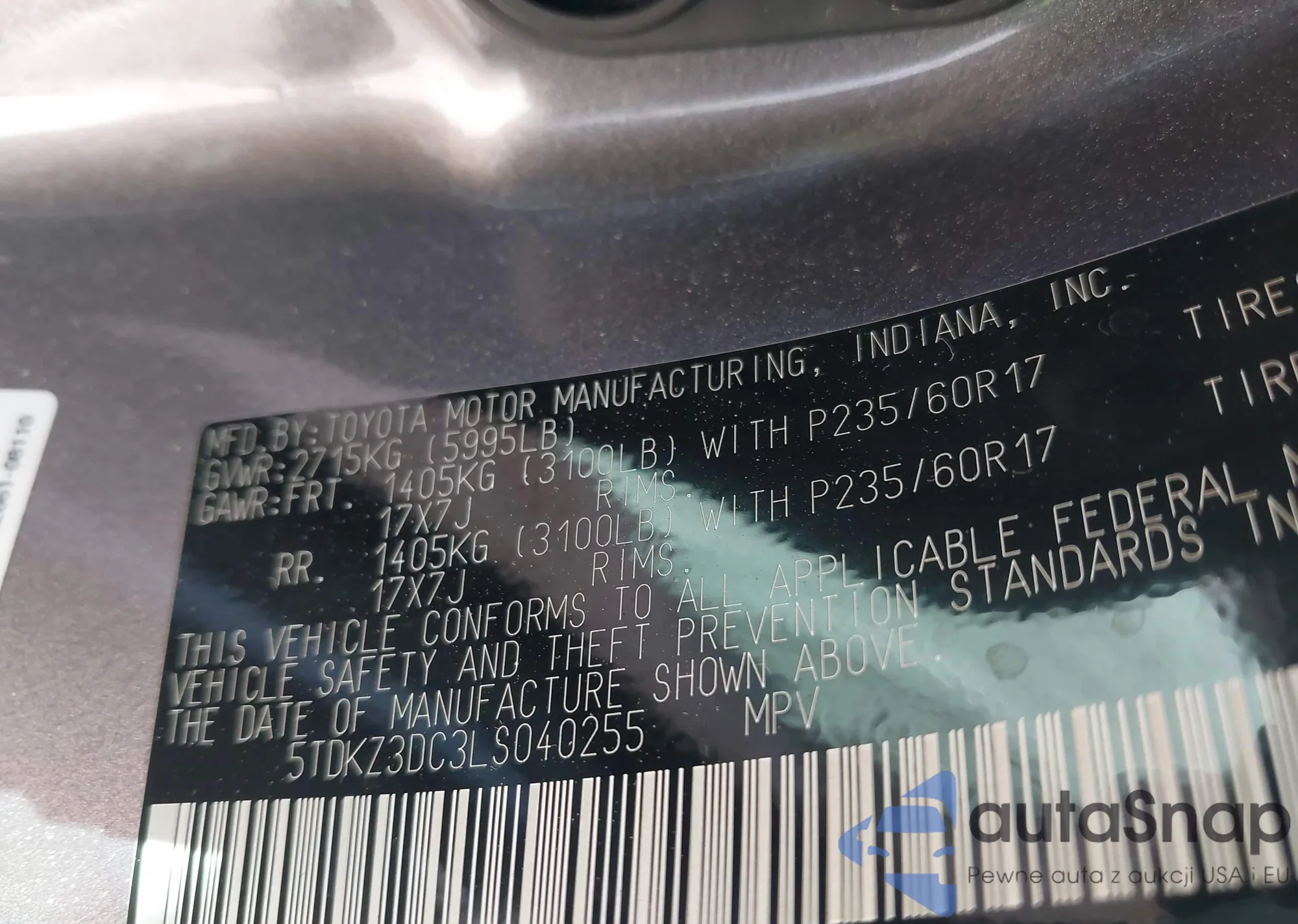 VIN: 5TDKZ3DC3LS040255