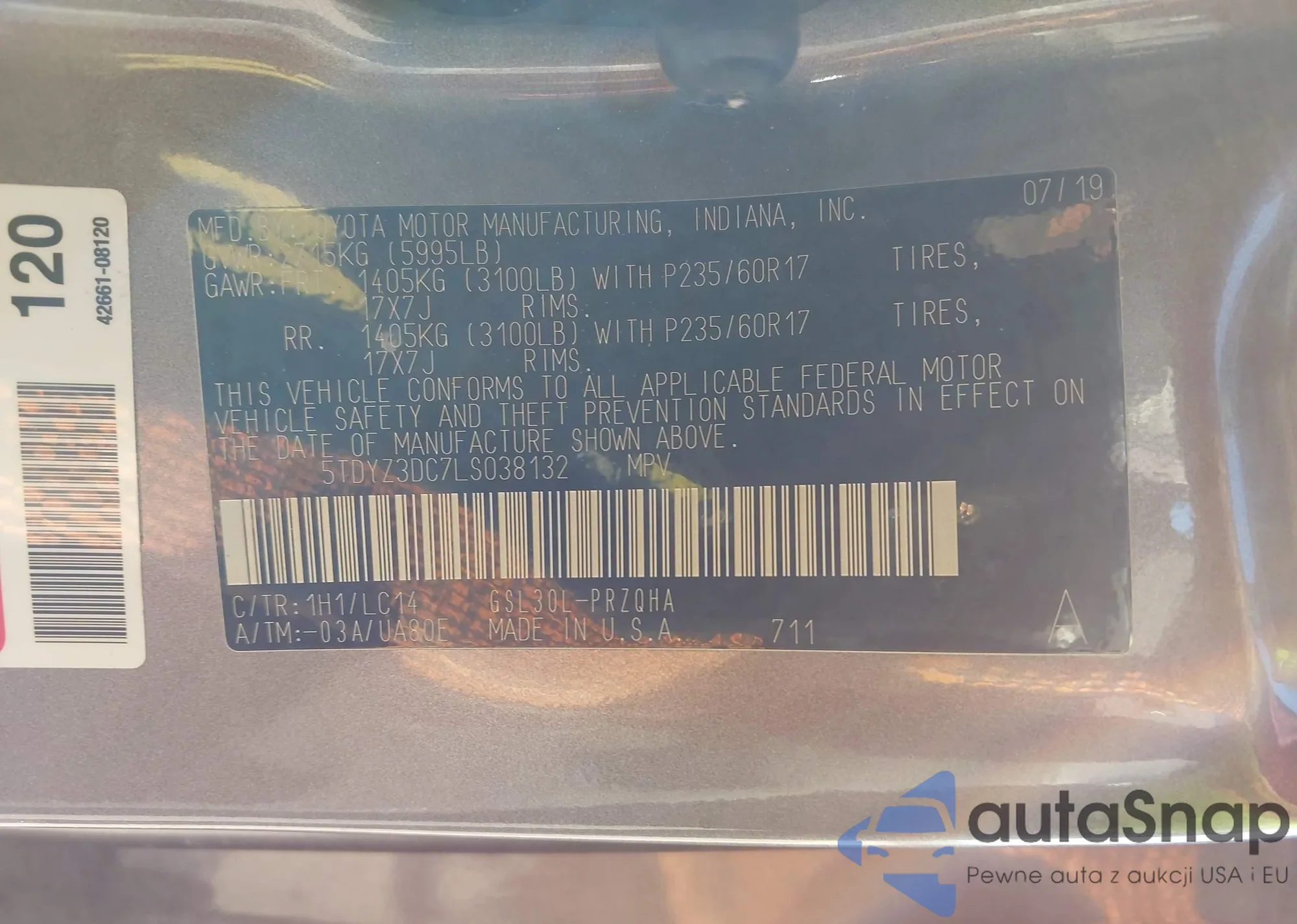 • VIN: 5TDYZ3DC7LS038132