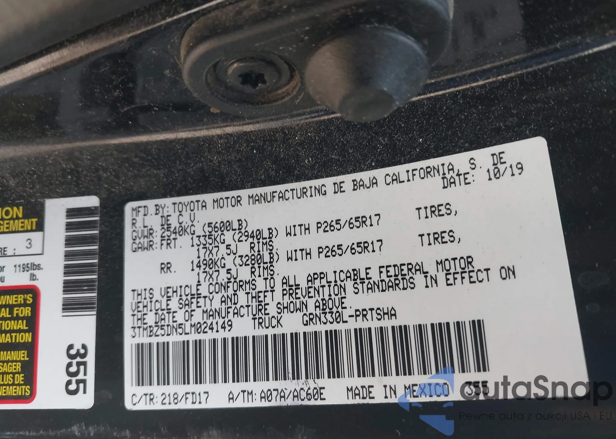 VIN: 3TMBZ5DN5LM024149