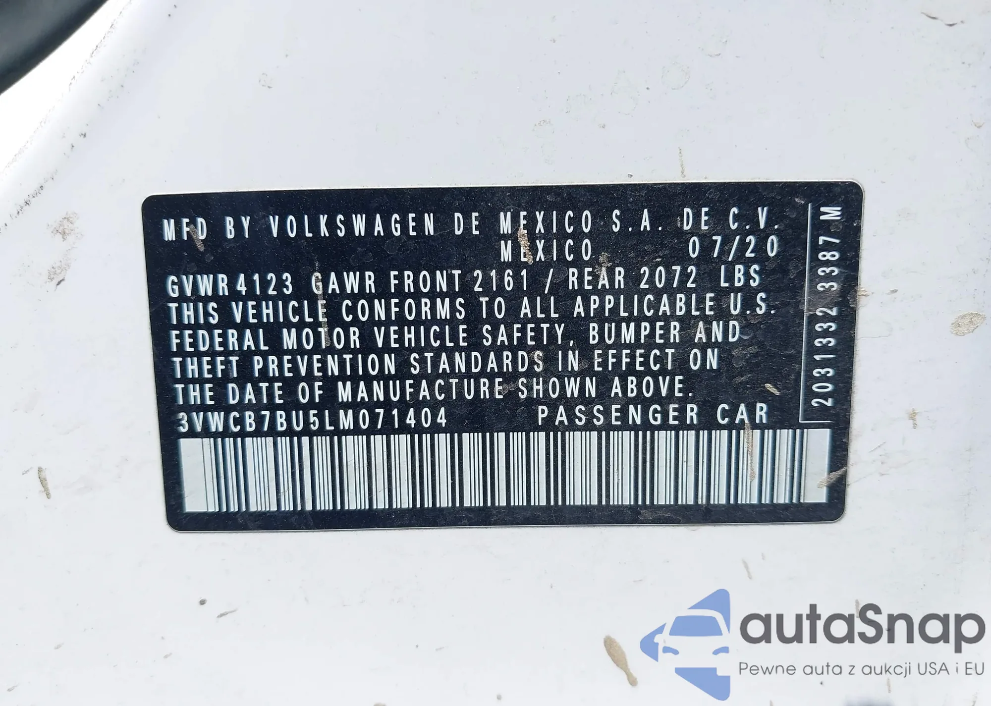 VIN: 3VWCB7BU5LM071404