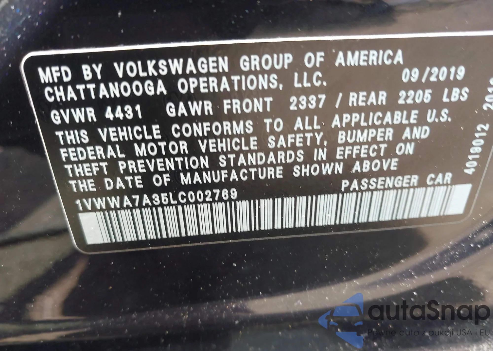 VIN: 1VWWA7A35LC002769