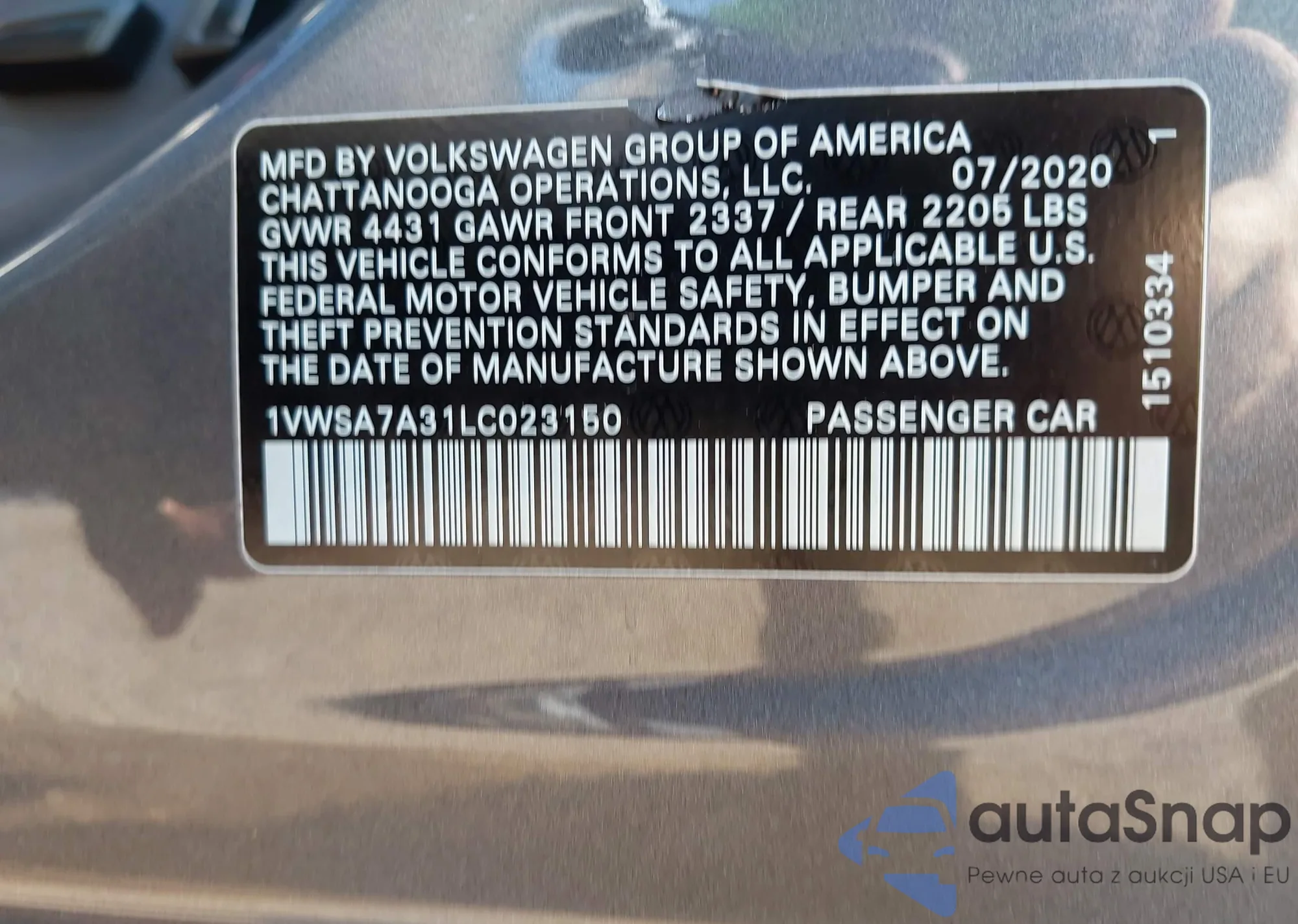 VIN: 1VWSA7A31LC023150