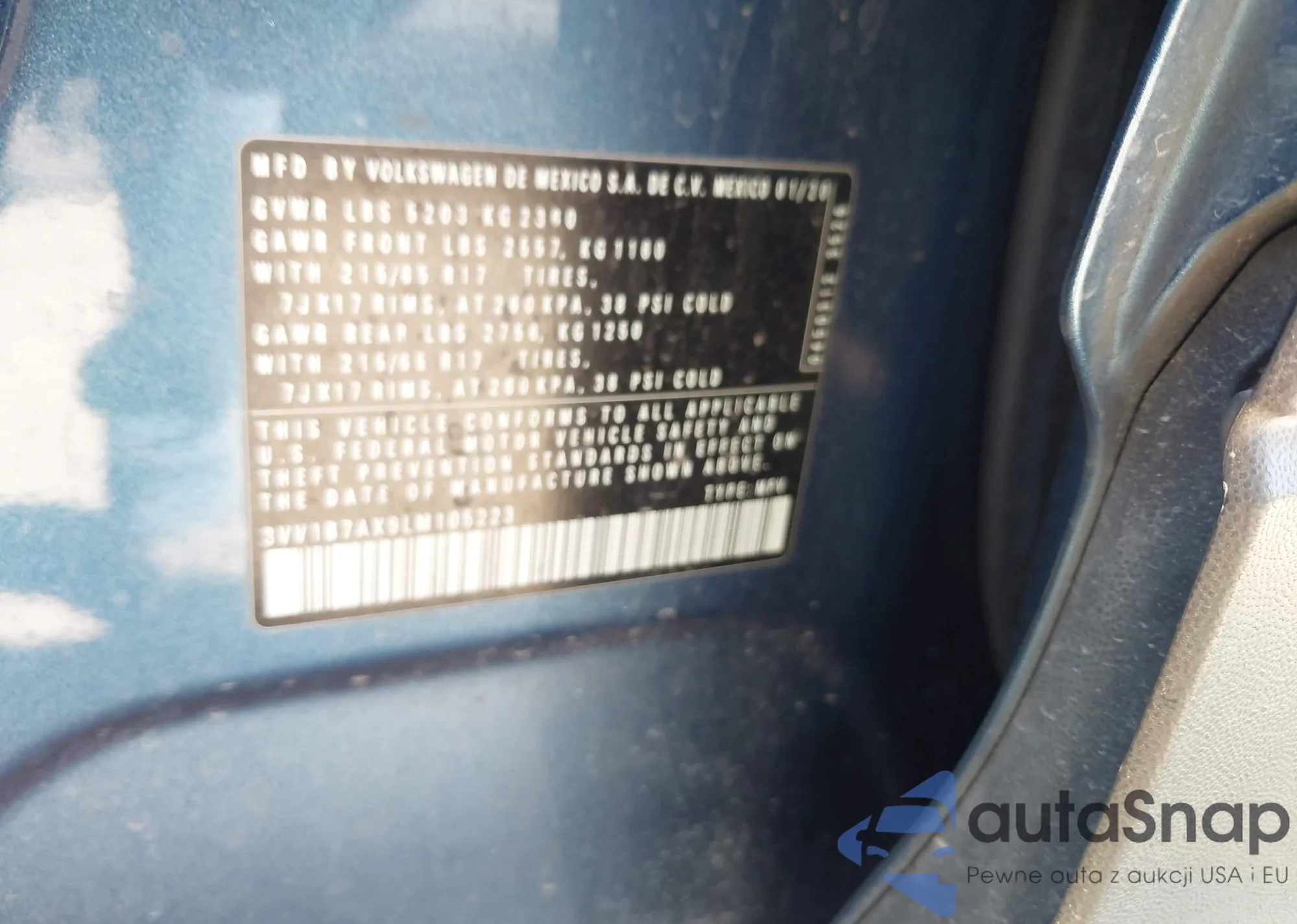 Samochód Volkswagen Tiguan 2020 (VIN 3VV1B7AX9LM105223) nie był wcześniej licytowany. Dokumenty są czyste, przebieg odpowiada lub jest niższy niż średnia rynku. Sprzedaje go firma ubezpieczeniowa – polecamy zakup. Dostawa do portu zajmie ok. 6–8 tygodni.